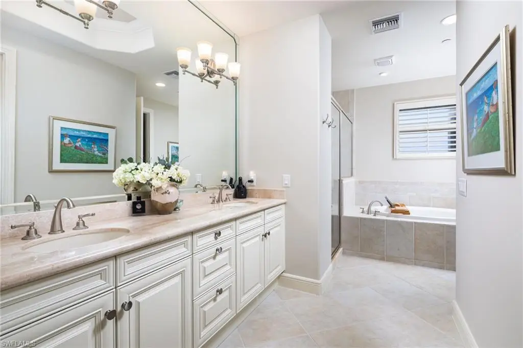 A rare opportunity in one of Naples' most distinguished 36-hole golf communities. This Turnkey Furnished, 3-bedroom plus den, 3.5-bath residence spans 2,814 square feet of refined living and is perfectly positioned to capture unobstructed southern views over pristine fairways, shimmering lakes, and dramatic sunsets. Designed for both elegance and ease, the open-concept plan flows effortlessly from the grand salon to a reimagined chefÆs kitchen with ample counter top seating, elevated cabinetry, and plenty of storage. The expansive, tiled lanaiùenclosed with remote-control storm shuttersùserves as an extension of the living space, offering year-round enjoyment of the panoramic views. Every bedroom is a private retreat with en suite bath, while the primary suite features French doors to the lanai, a spa-inspired bath, and a custom-fitted walk-in closet. Additional highlights include high, detailed ceilings, crown molding, and dual newer HVAC systems. Avellino Isles residents enjoy a recently renovated clubhouse with Jr. Olympic pool, fitness center, and social spaces, all within the private, amenity-rich Vineyards communityùjust moments from NaplesÆ finest dining, shopping, and Gulf beaches. A residence of this caliber is a privilege to own.