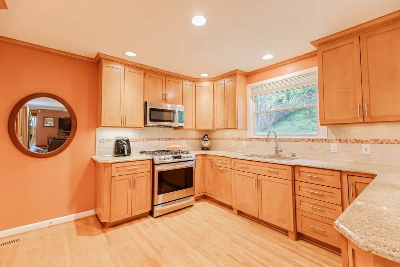 This beautifully updated ranch home sits on a 1.35 acre lovingly landscape lot. Newer double-pane insulated windows, several plantation shutters and solid wood front door with windows that offer a welcoming, light entrance. The main level has 1.5 red oak hardwood floors, cozy wood-burning brick fireplace and triple glass doors to the backyard patio. The renovated kitchen features solid maple cabinets, granite counters, tile backsplash, gas stove with electric oven and a breakfast bar. For added convenience, washer / dryer hookups are tucked away in a closet in the kitchen and basement. The bathrooms are nicely updated. A full finished basement offers extra living space with laminated wood flooring, a bar complete with a sink, fridge, and tumbled marble tile, as well as several storage closets and a full bathroom. Other upgrades include a tankless gas water heater, a sump pump, and a two-car garage with door openers and a dedicated Level 1 EV charger. The backyard is fenced and offers privacy and natural beauty. Seller does not want to move until the end of December.