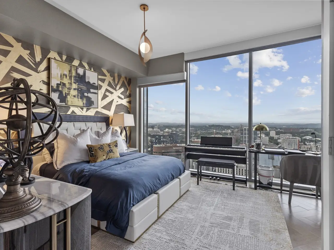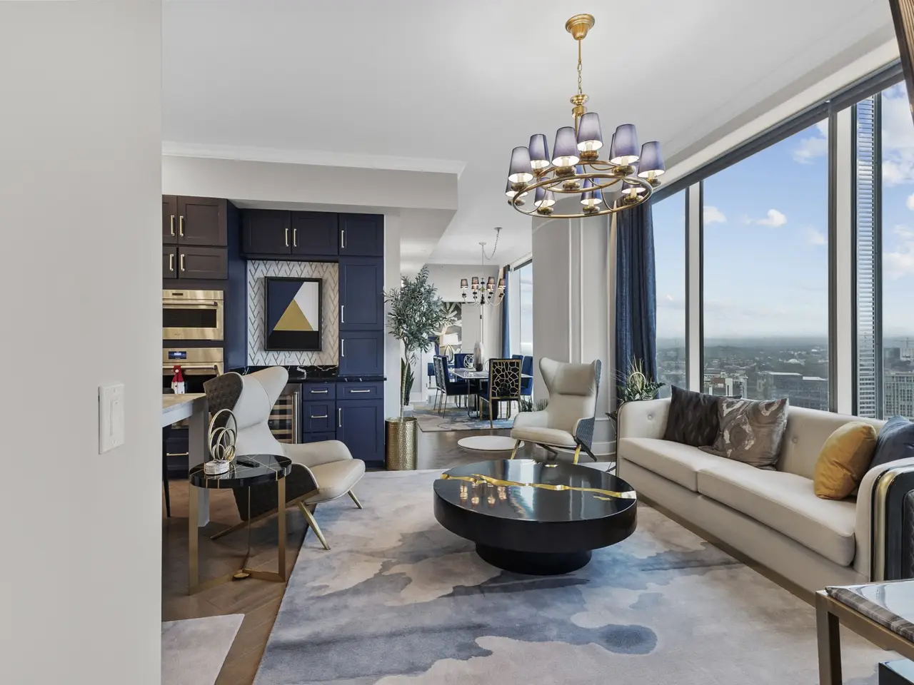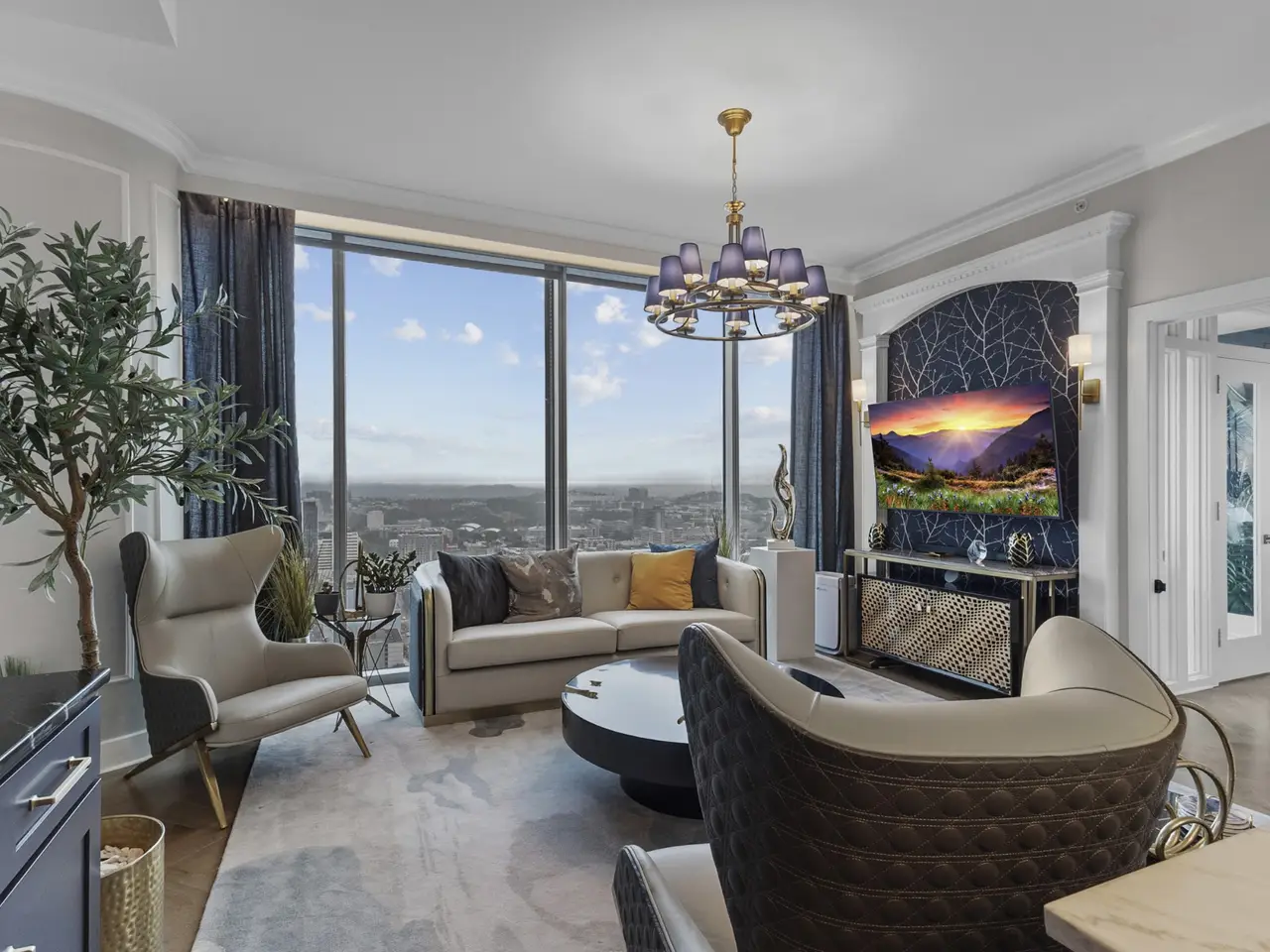 In the heart of the city, where the sun dips low and paints the sky in hues of orange and gold, there lies an immaculate Broadwest Condo. It is a sanctuary that lives not merely as a dwelling, but as a home. Two bedrooms, two and a half bathrooms, and a space for dining or work -- this is the 01 floor plan, the most coveted in the building, where comfort meets elegance. The west-facing views offer breathtaking sunsets, a daily reminder of nature's beauty. Inside, new hardware and lighting cast a warm glow upon the meticulously cared-for marble counters and hardwood floors. The kitchen is a chef's dream, equipped with top-of-the-line Wolf and Sub-Zero appliances, ready for the creation of meals that nourish both body and soul. Parking is a luxury here, with prime spots 127 and 128, complete with an EV charger for the modern traveler. Broadwest stands as a private and fully secured luxury residence, perched above The Conrad Hotel, where the conveniences of hotel life--room service, a 24-hour concierge, and a well-equipped gym--are but a call away. The neighborhood invites exploration, with restaurants, Whole Foods, fitness studios, coffee shops, and the Bridgestone Arena all within a leisurely stroll. This is a place where life unfolds, where every detail has been thoughtfully upgraded: from the lighting that brightens the spirit to the crown molding that frames the rooms with grace. Here, the windows are tinted to keep the heat at bay, and the guest room has been enlarged to welcome friends and family. The kitchen cabinets have been painted anew, and LED mirrors in the bathrooms reflect the care taken in every corner. Each wallpaper treatment tells a story, from the master to the powder room, creating an atmosphere of refined comfort. This condo is not just a residence; it is a canvas for life's moments, waiting for the next chapter to be written.