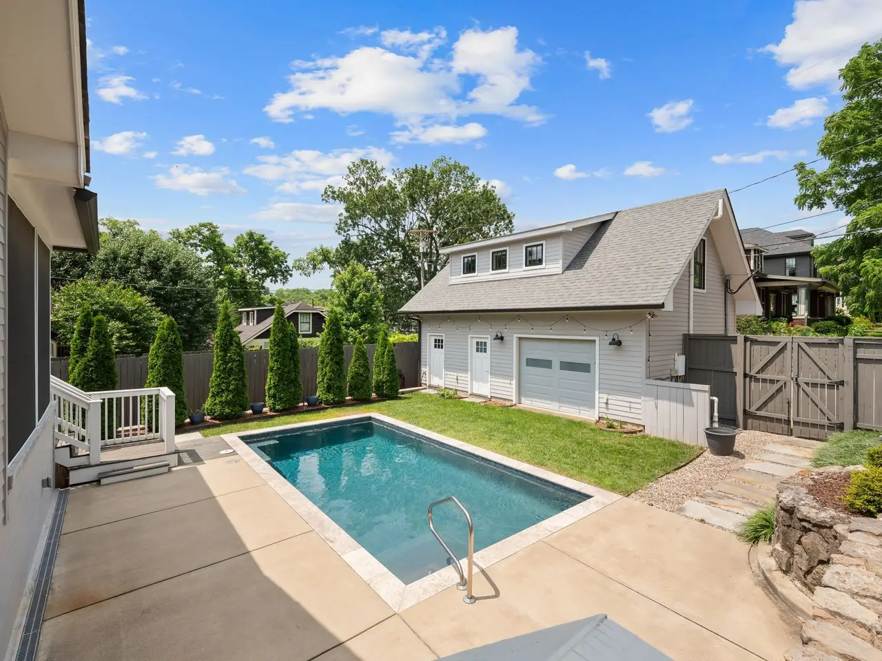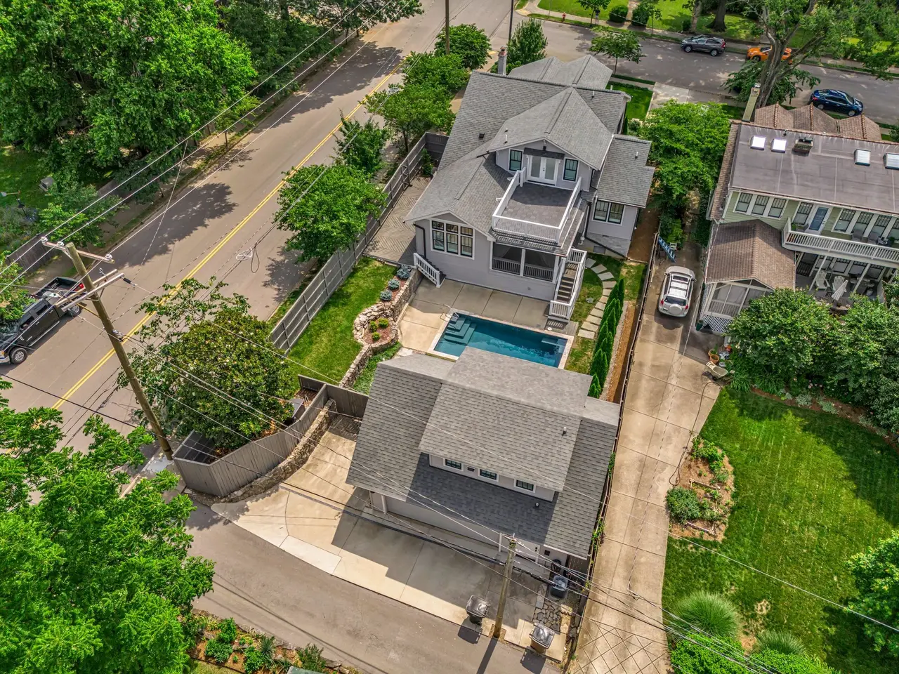 Step into timeless charm and modern luxury with this beautifully renovated historic bungalow on one of Nashville's most coveted streets and neighborhoods | Full renovation done in 2020 | Designed by Nine12 Architects | Blending classic architecture with high-end contemporary finishes | The main residence showcases light-filled interiors, original character, and thoughtful design ideal for everyday living and elegant entertaining |The chef's kitchen opens seamlessly to elegant living areas ideal for entertaining, while the serene primary suite offers a spa-inspired retreat | Additional upgrades made in 2023 include interior construction, painting, hardwoods, lighting, electrical, and crawlspace upgrades | Outside, enjoy your own private oasis featuring the large covered patio, a 12x24 saltwater pool with a new privacy fence installed in 2023 and professionally landscaped yard by Gardens of Babylon | Half bath for pool at garage | A rare bonus with the fully equipped 664 sq ft DADU above the detached two-car garage perfect for guests, extended family or luxe rental potential | A few features to mention include plantation shutters, covered front porch with a porch swing, large covered back patio, new grill 2023, backup generator, tankless hot water heater, newer HVAC (2020), full irrigation system, and sump pump installed 2023, new dehumidifier 2024 | Rooftop deck on back of main house | Basement has a great area for a workshop | This home offers the perfect blend of history, functionality, and Southern charm | Walkable with sidewalks | Just minutes from Nashville's finest dining, culture, and entertainment