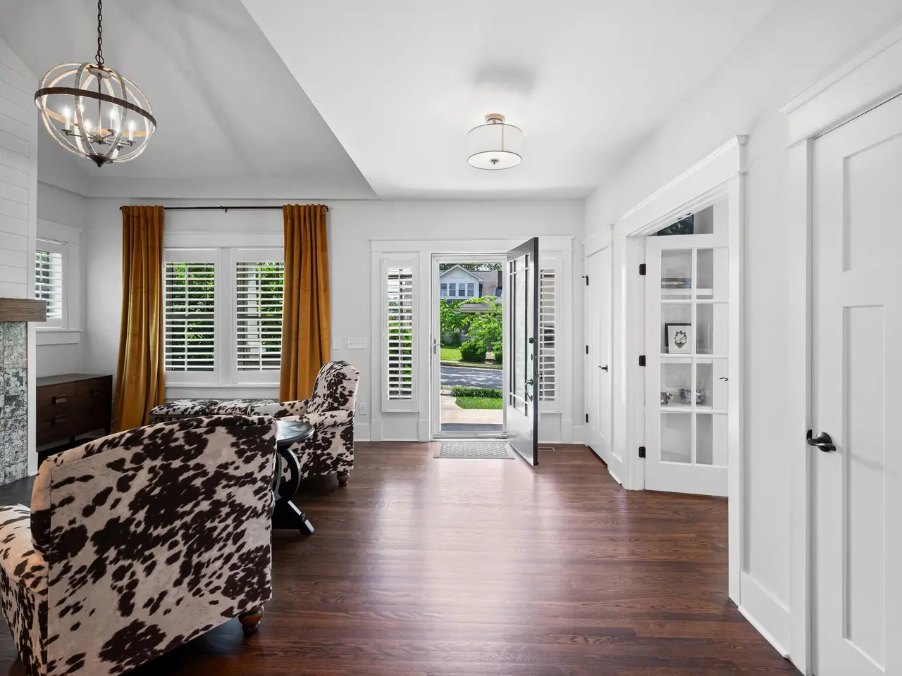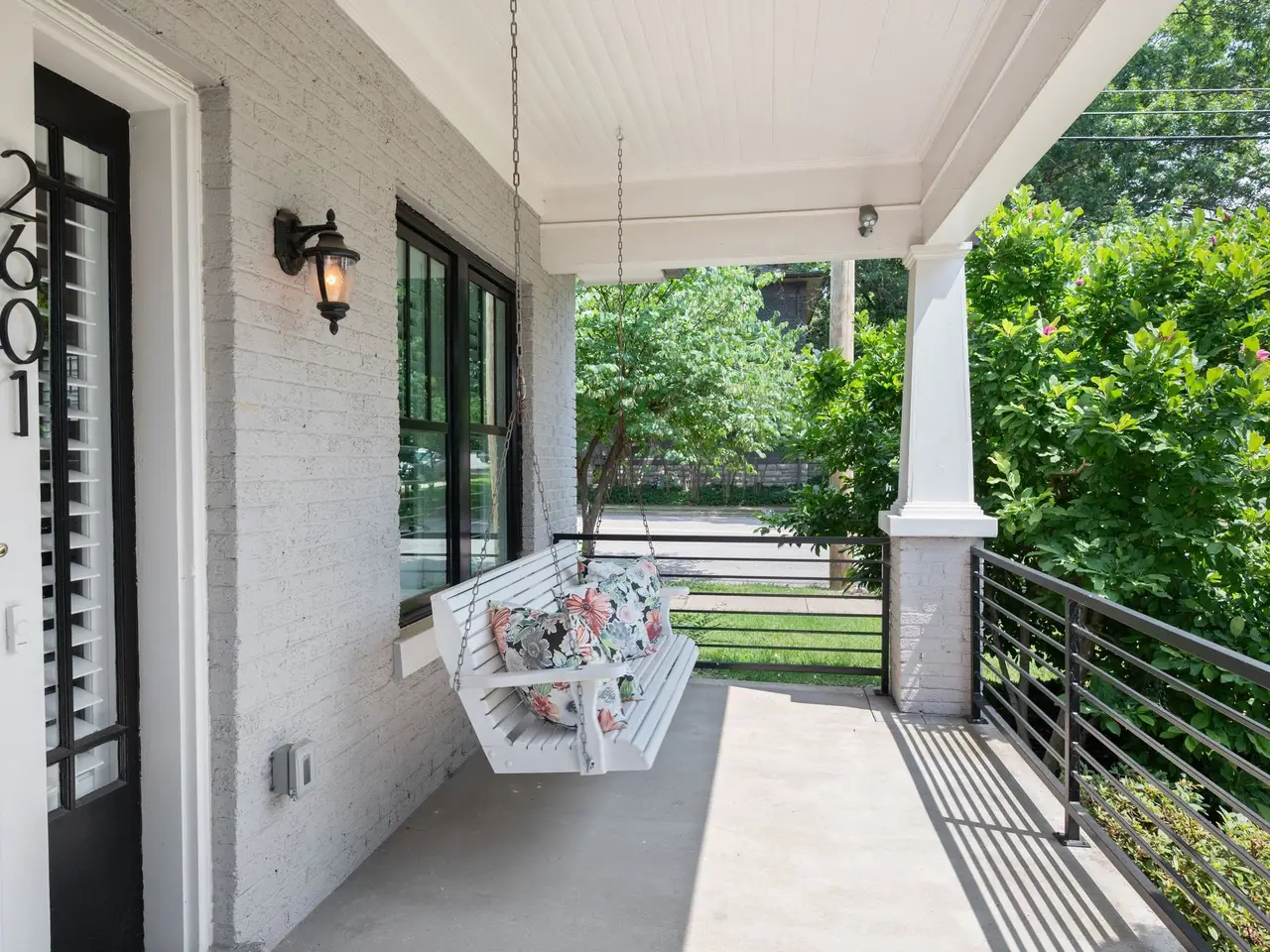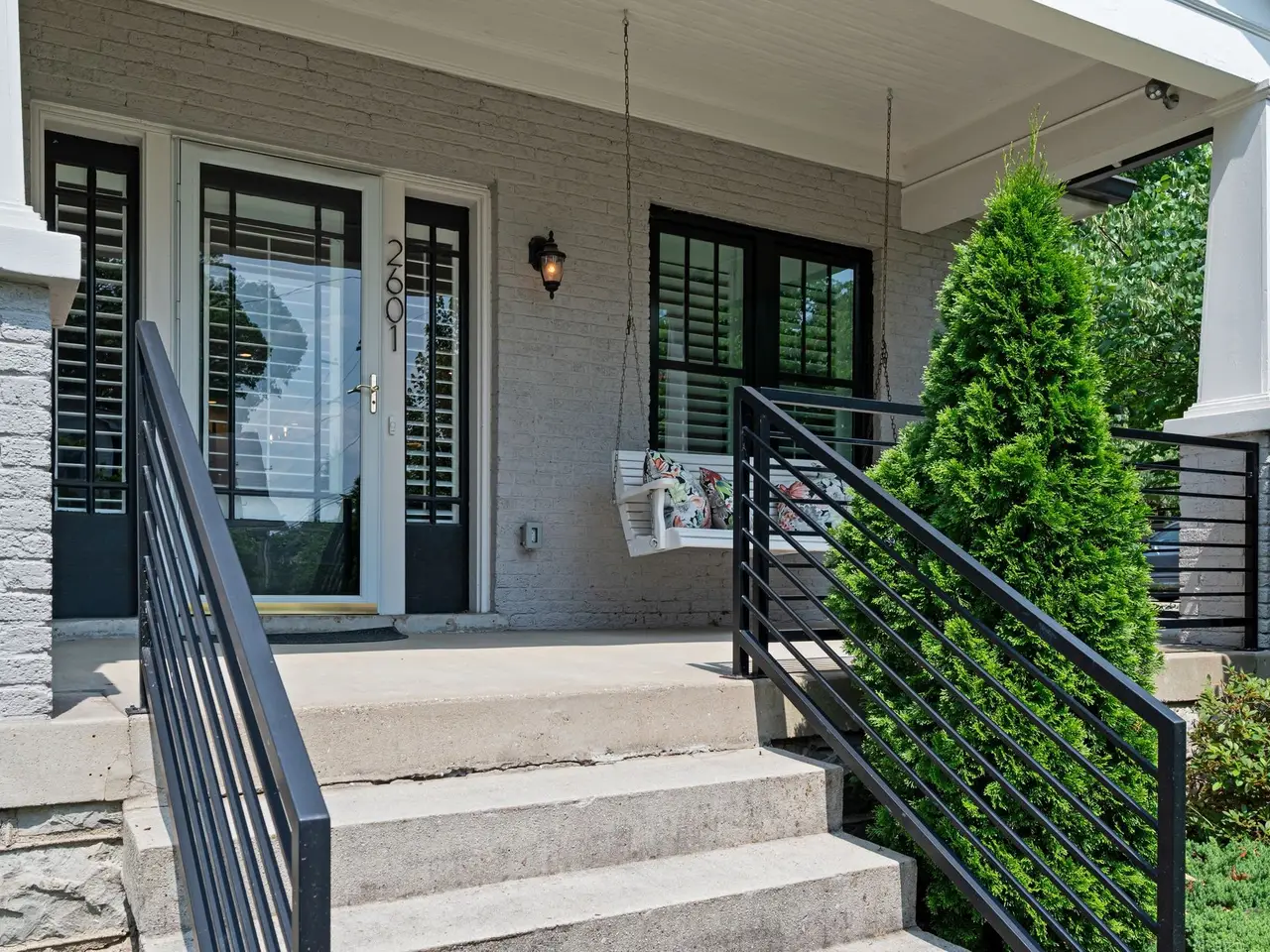 Plantation shutters and covered front porch