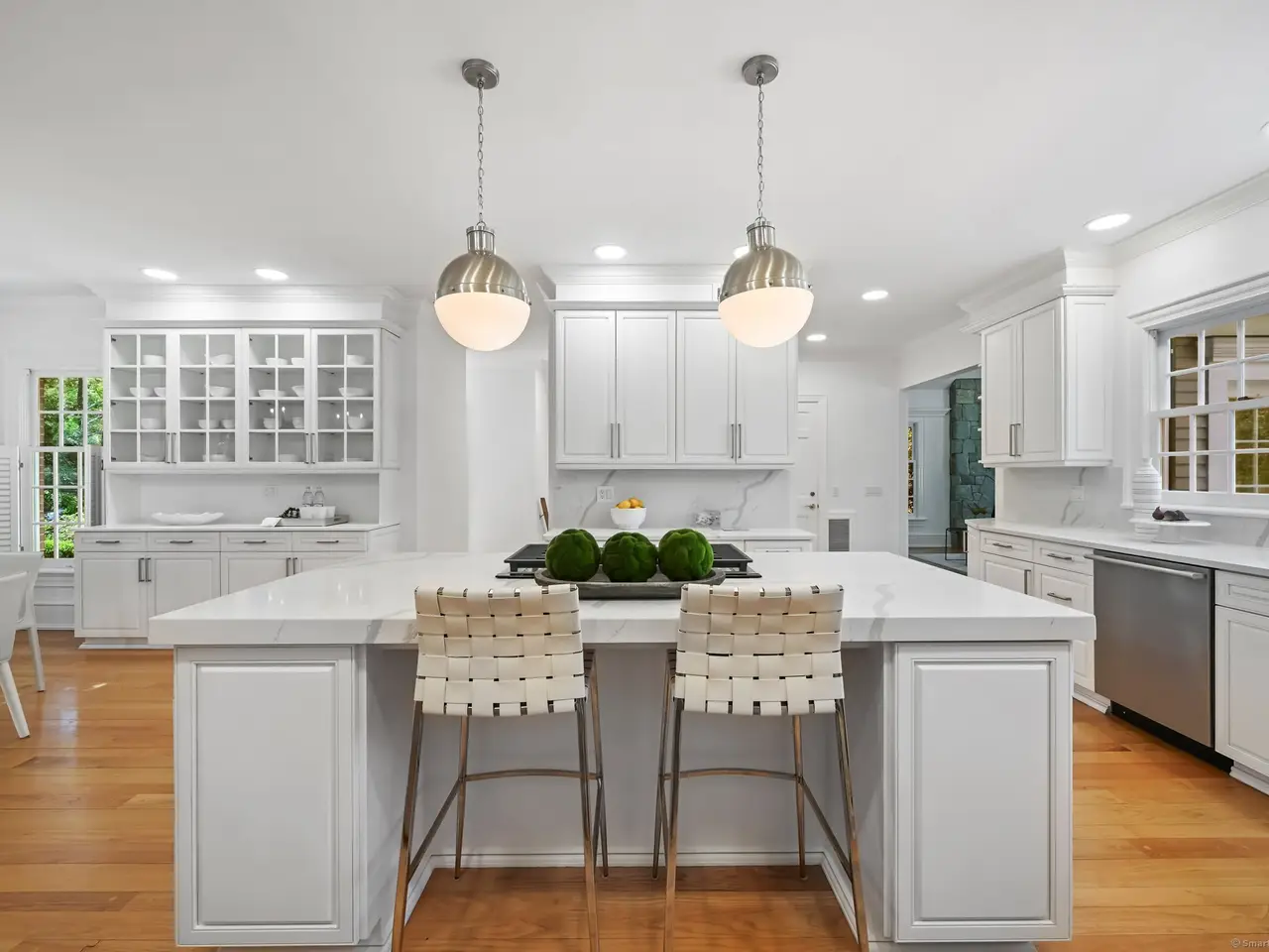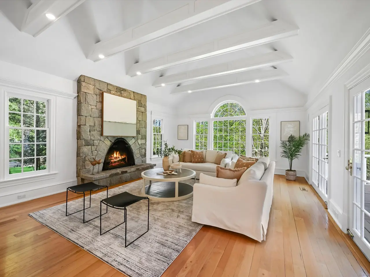Nestled at the end of a private lane and set on 4.4 beautifully landscaped acres, this stunning brick colonial-crafted by award-winning builder Kaali-Nagy-offers nearly 7,000 square feet of luxurious living space. A dramatic three-story entryway fills the home with natural light, leading into a formal living room with a fireplace and French doors. A richly paneled office tucked just behind the living room includes built-ins, a wet bar and a second fireplace, creating the perfect work-from-home retreat. Designed for entertaining, the sprawling dining room easily accommodates large gatherings and opens onto a spacious deck overlooking spectacular grounds filled with specimen trees and a designated play area. The newly renovated chef's kitchen features quartz countertops, top-tier appliances, a large island, and a sunlit eat-in area. The adjacent family room showcases a vaulted ceiling, a floor-to-ceiling fieldstone fireplace, and French doors that open to the tranquil exterior. Upstairs, the expansive primary suite boasts its own fireplace, a brand-new spa-like bathroom with a soaking tub, oversized walk-in shower, and dual walk-in closets. Four additional en-suite bedrooms, all with brands new bathrooms, provide ample space for family and guests. A vaulted-ceiling bonus room, a cozy game room, and a second office or exercise space offer flexibility for every lifestyle. An area off the bonus room could easily be transformed into an ideal au-pair or guest suite. Located within walking distance to St. Luke's School and less than 10 minutes to the heart of town with its charming shops and restaurants, this home offers the perfect blend of privacy, tranquility, luxury, and convenience. Truly a special opportunity to own an exceptional property. Pool Design in Documents.
