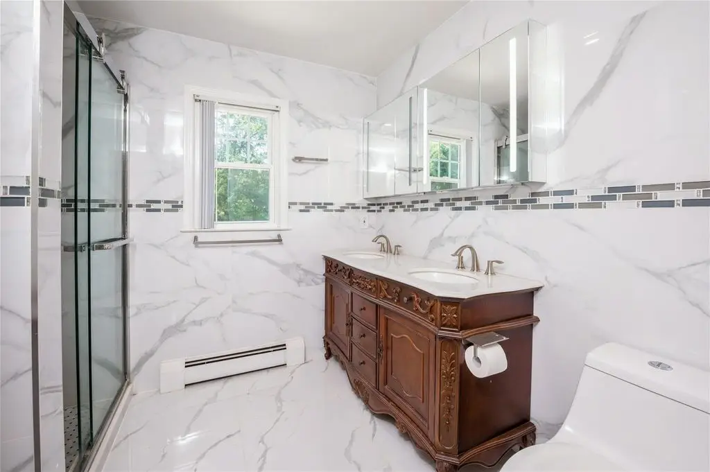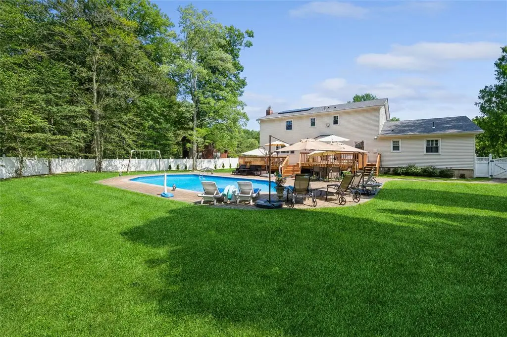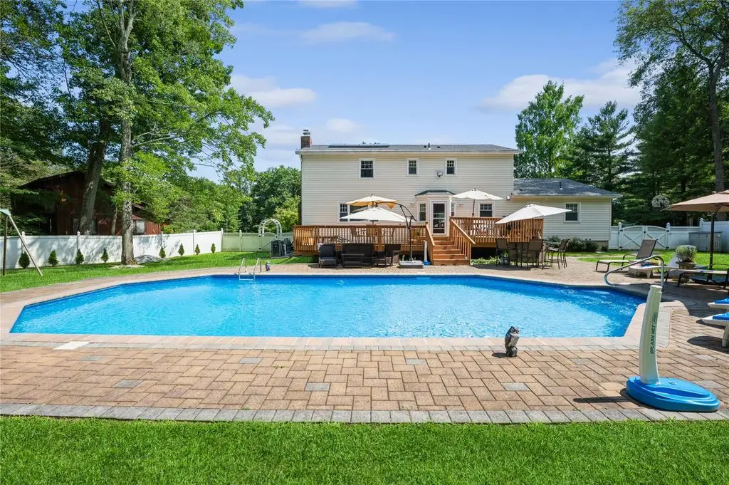 New City, NY - Experience luxury living in this stunning stately, elegant 5 bedroom, 3 bathroom recently renovated center hall colonial, nestled on a half acre fully fenced backyard oasis complete with a heated in-ground salt-water pool, a cul-de-sac location, and backing up to Kennedy Dells Park. This beautiful home in the highly-rated Clarkstown school district has everything you desire. The first level features gleaming hardwood floors and an abundance of natural light. It includes a formal living room with bay window, a banquet-sized formal dining room with a second bay window, and an updated eat-in kitchen with stainless steel appliances, quartz countertops and access to your spacious deck and your private backyard oasis, perfect for entertaining or relaxing. This level also includes a bedroom, a full bath, and convenient laundry. The second level offers a primary bedroom with an en-suite bath, three additional sizable bedrooms, and a full main bath. The lower level provides an additional 950 square feet, offering endless possibilities for customization to suit your needs. So come enjoy all that the pedestrian-friendly town of New City has to offer, with superb restaurants and great shops. Take advantage of the easy commute to NYC, Westchester, and New Jersey, and the outstanding parks, pools, hiking trails, lakes, pickleball courts, and other recreational activities in beautiful Rockland County, where one-third of the land is parkland. Additional Information: Amenities:Storage,ParkingFeatures:2 Car Attached,