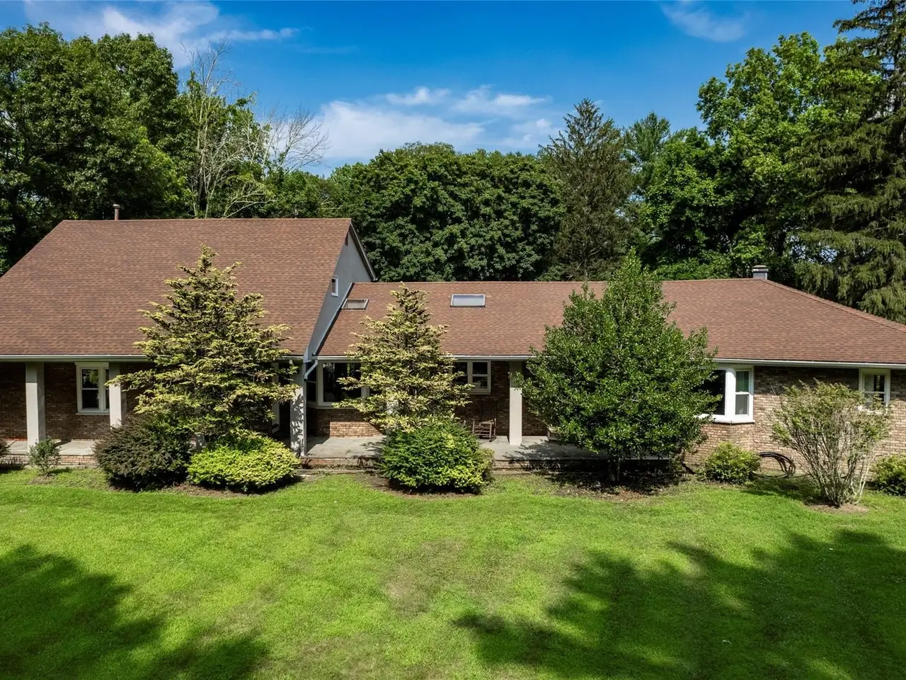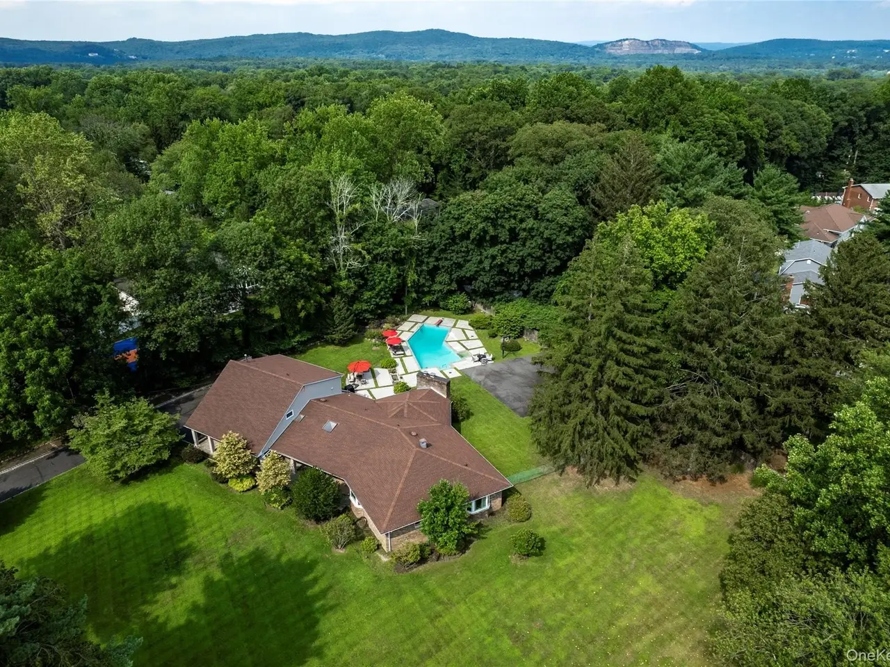 The owner is offering private financing to qualified purchasers with good credit and a normal down payment and may also consider a lease-purchase arrangement—an uncommon opportunity for buyers who might not fit conventional lending programs. Set on a gently winding country road in the heart of New City, this stately all-brick and stucco residence offers over 4,300 square feet of versatile living space on a beautifully landscaped acre. A legal two-family home, it’s ideal for multi-generational living, extended guests, or flexible use. Inside, the dramatic living room with cathedral ceilings anchors an open-concept layout filled with light and volume. The thoughtfully designed kitchen provides abundant cabinetry and workspace, while the second-floor living area functions perfectly as private guest quarters or an independent suite. Solid construction and classic design details ensure timeless appeal. Additional highlights include a full unfinished basement with expansion potential, an oversized two-car garage plus driveway parking for 10+, and a private, tree-lined yard with in-ground pool—perfect for summer relaxation and entertaining. Conveniently located just minutes from Exit 11 of the Palisades Parkway and close to the shops, dining, and parks of revitalized New City, this property is also served by the Clarkstown North School District. A compelling combination of size, substance, location, and rare financing flexibility for well-qualified buyers makes this a truly standout opportunity in Rockland County.