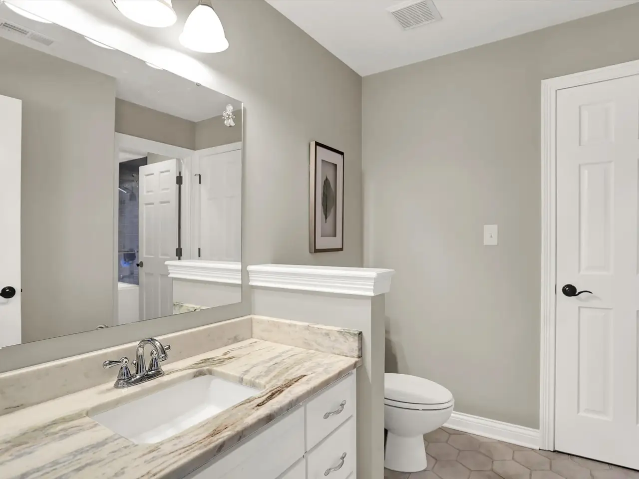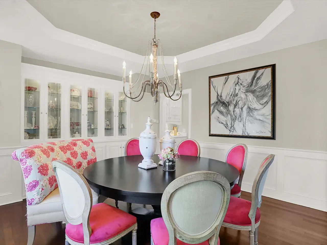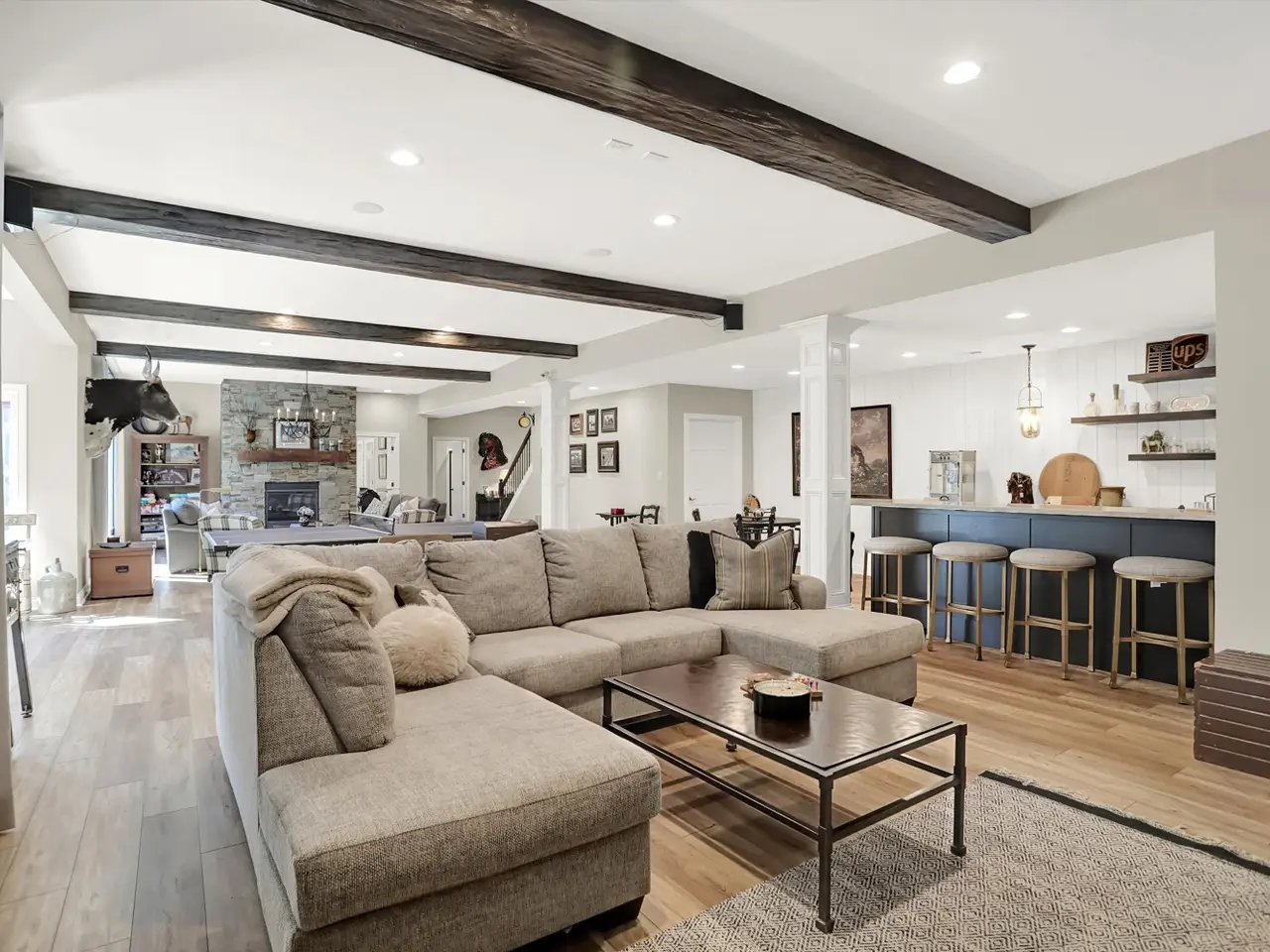Home is back on the market due to no fault of seller. Discover the beauty of life well-lived in this stately custom brick home, perfectly positioned to capture tranquil views of Sugar Creek. This 5-bedroom, 5-bath masterpiece offers a harmonious blend of elegance, comfort, and versatility. From the moment you enter, the soaring ceilings and exquisite custom detailing set the stage for a home that is as welcoming as it is sophisticated. The heart of the home is the dream culinary kitchen-a space that inspires with its premium appliances, sleek countertops, and generous layout. Imagine preparing meals for family or entertaining guests in a kitchen that is both functional and stunning. Flowing seamlessly from the kitchen is the inviting 3-seasons room, where you can sip your morning coffee while soaking in the peaceful views of the creek or enjoy evenings surrounded by the beauty of nature. This space becomes a sanctuary year-round, perfect for quiet moments or lively conversations with friends. The walkout basement is a showstopper, designed to elevate your lifestyle. A warm fireplace anchors the space, while a stylish bar area invites celebrations and gatherings. Additional finished areas provide endless possibilities-a workshop for creative projects, a home gym to keep you energized, or a craft room to explore your passions. The home's five bedrooms is a private haven, offering ample space and thoughtful design. The primary suite, with its luxurious ensuite bath, feels like your personal retreat, perfect for relaxation at the end of the day. Every corner of the home showcases designer touches, from the custom ceilings to the hand-selected finishes, ensuring a cohesive blend of sophistication and comfort. Outside the magic continues, the natural beauty of Sugar Creek offers an unparalleled backdrop for outdoor gatherings, quiet reflection, or simply enjoying the changing seasons. This home isn't just a place to live-it's a lifestyle.