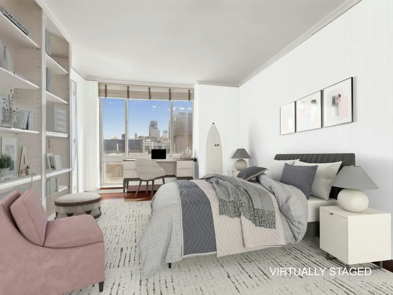 Expansive primary suite with city views