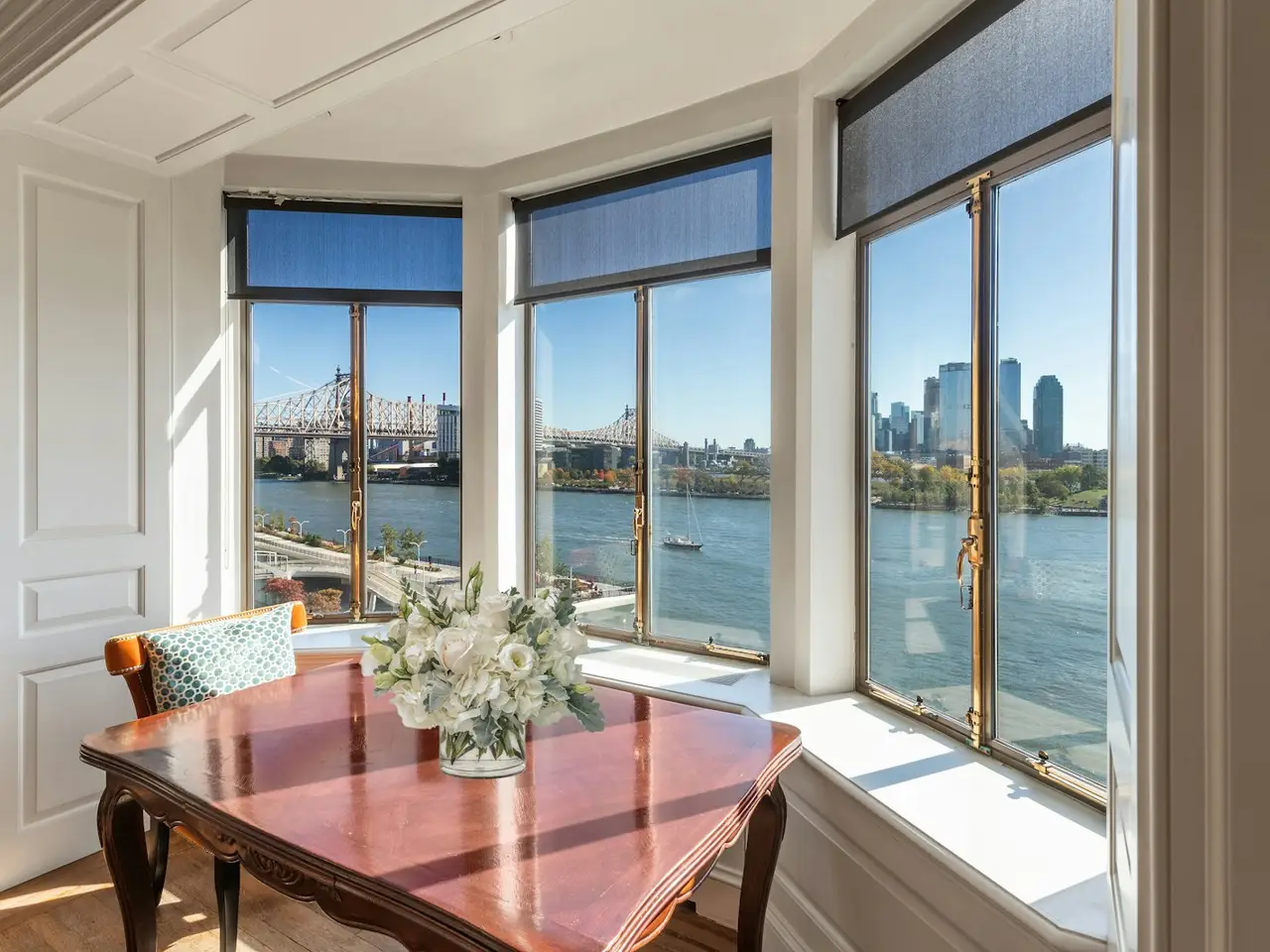 This exquisite 10-room apartment offers breathtaking views of the East River, with sun-drenched oversized rooms and soaring ceilings that create a truly unique living experience. Upon arrival, the private elevator opens to a dedicated landing with 10-foot ceilings, setting the tone for this remarkable residence. Charming wood-burning fireplaces and beautifully crafted hardwood floors complement the well-designed layout, ideal for both sophisticated entertaining and comfortable everyday living. The luxurious primary bedroom suite is a serene retreat, featuring abundant natural southern light and sweeping river views, along with a private dressing room and en-suite bath. Three additional generously sized bedrooms, one with its own en-suite bathroom, and two sharing a Jack and Jill bathroom, provide ample space and privacy. In addition, the apartment includes two staff rooms and baths, as well as a powder room located just off the foyer. A large eat-in kitchen is accompanied by a butler's pantry. There is also a full laundry room off of the staff rooms. Built in 1931 by the renowned architectural firm Bottomley, Wagner & White in the grand Art Deco style, the prestigious River House Cooperative epitomizes luxury living with unparalleled service and privacy. Residents enjoy access to the meticulously landscaped formal garden that overlooks the East River. Tenant shareholders also have the opportunity to join the River Club, offering newly renovated private facilities, such as three squash courts, two tennis courts, a golf simulator, a swimming pool, gym, garden terrace, and dining and entertainment facilities. The River House provides its residents with the highest level of service, including 24-hour doormen, a full-time concierge, and a resident manager, ensuring a seamless and refined living experience. Pets, pied- -terres and 50% financing is permitted. The unit transfers with a generous storage room.