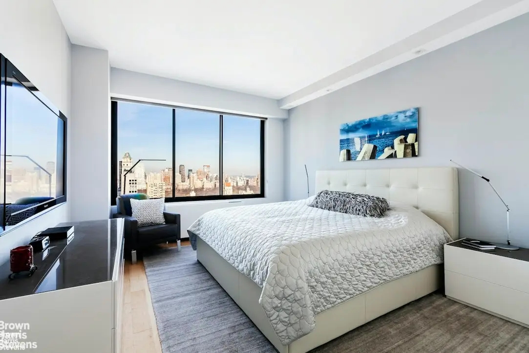 At Lease Signing, Tenant pays first month's rent, security deposit, move-in fee ($500) and Board attorney fee ($400). Available for 6-12 months. Welcome home to this newly renovated, FULLY FURNISHED, large one bedroom with unbelievable views overlooking Central Park and New York City skyline. Amazing sunsets too! This luxury home features all new hardwood floors, beautiful kitchen, spa-like bathroom, washer dryer, floor to ceiling windows and imported Italian custom closets. Enjoy incredible sunsets and spectacular views from your corner balcony overlooking the City from the 40th floor. The Savoy amenities include 24 hour doorman & concierge service, on-premises dry cleaner/valet service, garage, newly renovated fitness center, newly renovated residents' lounge and party room, masseuse, sauna & landscaped sundeck. Sorry, no pets.