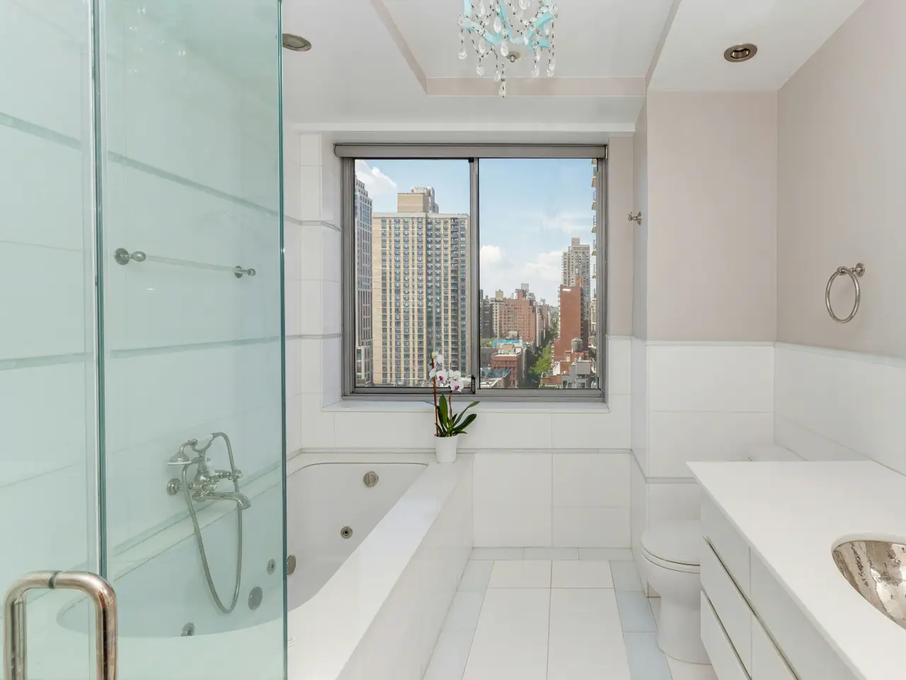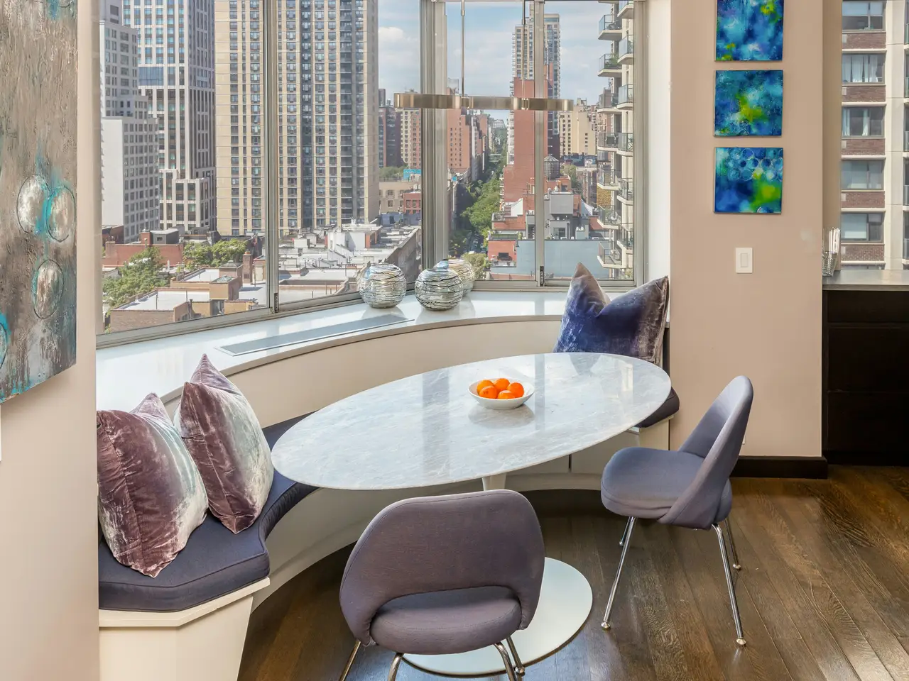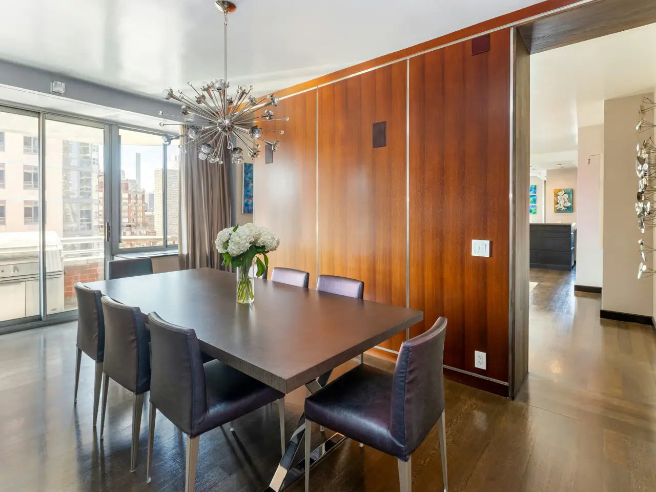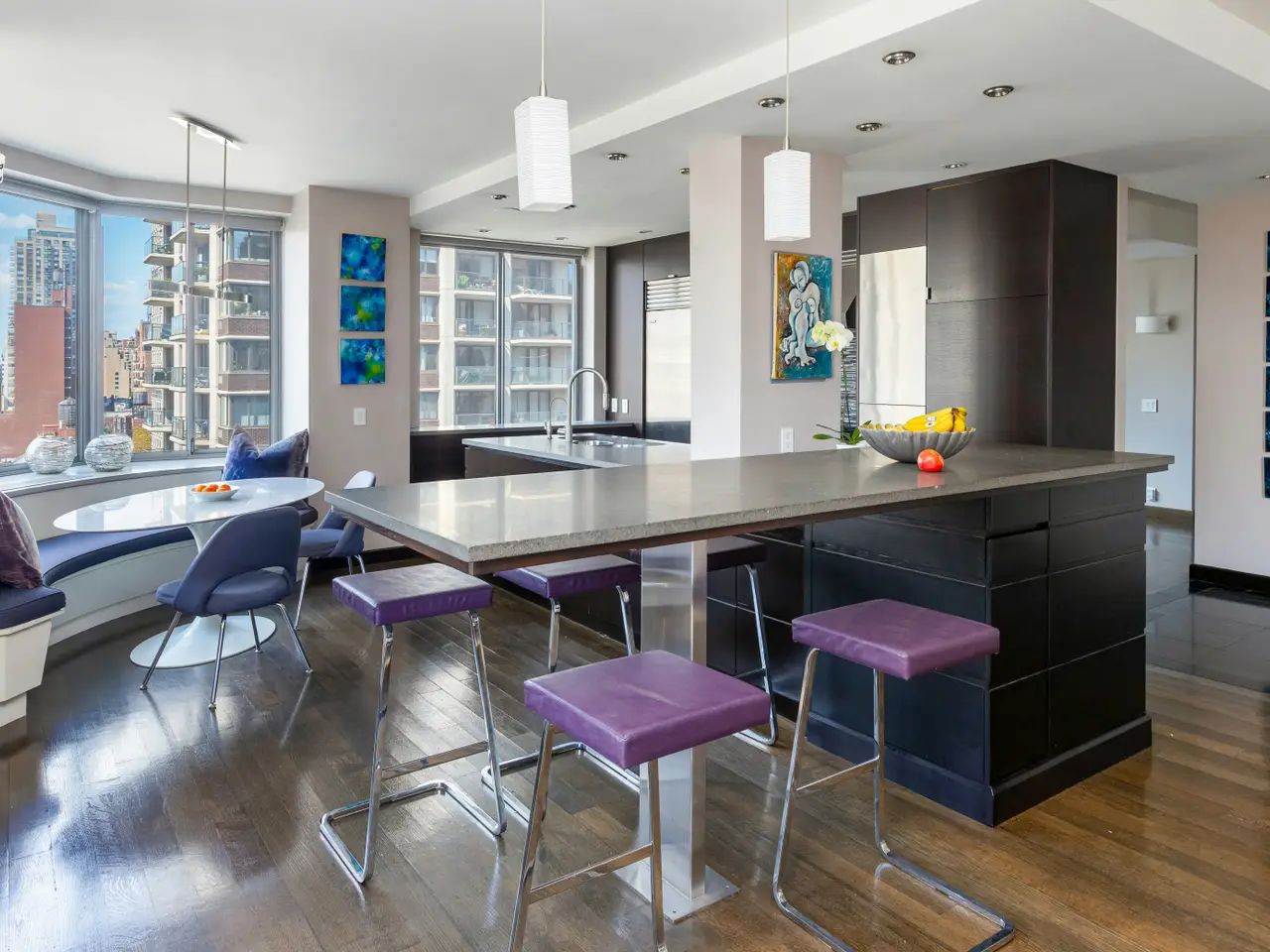 Expansive and Glamorous UES Duplex with Private Outdoor Space Measuring over 3,000 interior square feet and boasting an unbelievable five private outdoor spaces, this sensational duplex combines the scale of a townhouse with the light, views, and elevation of a high-floor home on the Upper East Side-housed in an impeccably run full-service condo with amenities. Every room opens to greenery or skyline vistas. Balconies extend from each bedroom, with additional terraces off the living and dining rooms-rare in any Manhattan residence. To the west, tree-lined 84th Street offers a glimpse of the Park. The main level is designed for entertaining, with fluid transitions that define the living, dining, lounge, and kitchen spaces while preserving an airy, loft-like openness. Light and views flow poetically across the rooms and out to multiple terraces-ideal for relaxing in the sun or grilling. At the heart of the home, the chef's kitchen is anchored by an oversized L-shaped island with seating for six, complemented by a banquette dining nook. Dark-stained cabinetry with stainless-steel accents conceals an appliance garage, built-in spice rack, and abundant storage. Appliances include a Sub-Zero 30" Classic Refrigerator, Wolf six-burner range and oven, Miele dishwasher, and multiple Sub-Zero beverage drawers. The adjoining formal dining room spans nearly 18 feet and opens to a balcony with an electric grill. With space for large gatherings and two Sub-Zero wine refrigerators, the main level was designed for entertaining. Completing this level is a secondary suite generous enough to rival many primaries. This flexible suite includes a home office with built-ins and a spacious guest bedroom or alternative primary with sitting area. The floor also features a discreet powder room and an additional bedroom with a full bath and dressing room. A dramatic floating staircase with a sculptural steel railing anchors the living space and leads gracefully to the upper level, basking in double-height city views. On the upper landing, a built-in desk for two, bathed in natural light, serves as a central home office hub, while a proper laundry closet with a Miele washer/dryer and shelving adds convenience. The primary suite is a private sanctuary of exceptional scale, framed by a terrace and a windowed seating area that invites slower starts to the day-perfect for coffee, reading, or even a light-filled mini gym or lounge. Expansive custom storage, including a walk-in closet, enhances both functionality and elegance. Two full bathrooms complete this retreat, a rare luxury in any home. One offers a Jacuzzi soaking tub and glass stall shower set beside a large window overlooking the city. The second features a walk-in shower and generous counter space. Both include radiant heated floors and sophisticated tilework. Across the landing, another generous bedroom with a windowed en-suite bathroom and excellent storage completes the upper level. Additional highlights include hammered metal sinks, curated architectural lighting, City Quiet Windows in the bedrooms, a generous pantry, and multiple walk-in closets. 401 East 84th Street offers the convenience of a full-time staff and resident manager, paired with a collection of amenities- all with no additional amenity fees. Residents enjoy a rooftop deck, fitness center, laundry facilities, children's playroom, and a versatile event space. The lobby was newly updated as well. The Dunhill all moments from the Q train, the neighborhood's dining scene, Carl Schurz Park, and top-rated private and public schools. Note: Buyer responsible for a reserve fund contribution equal to three months of common charges, due at purchase application submission. This sale uniquely includes ownership of 4 private storage units.