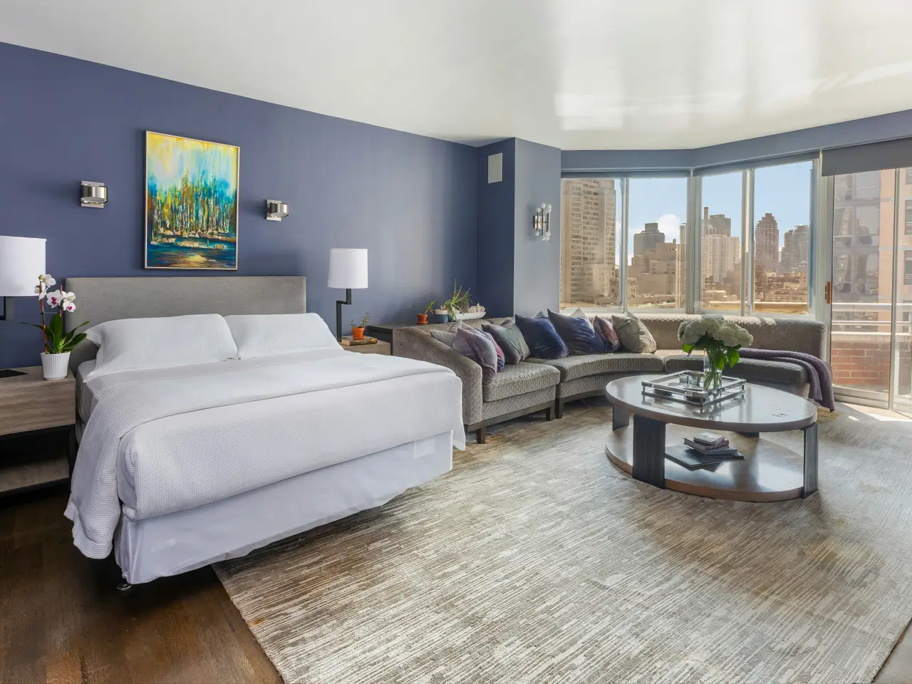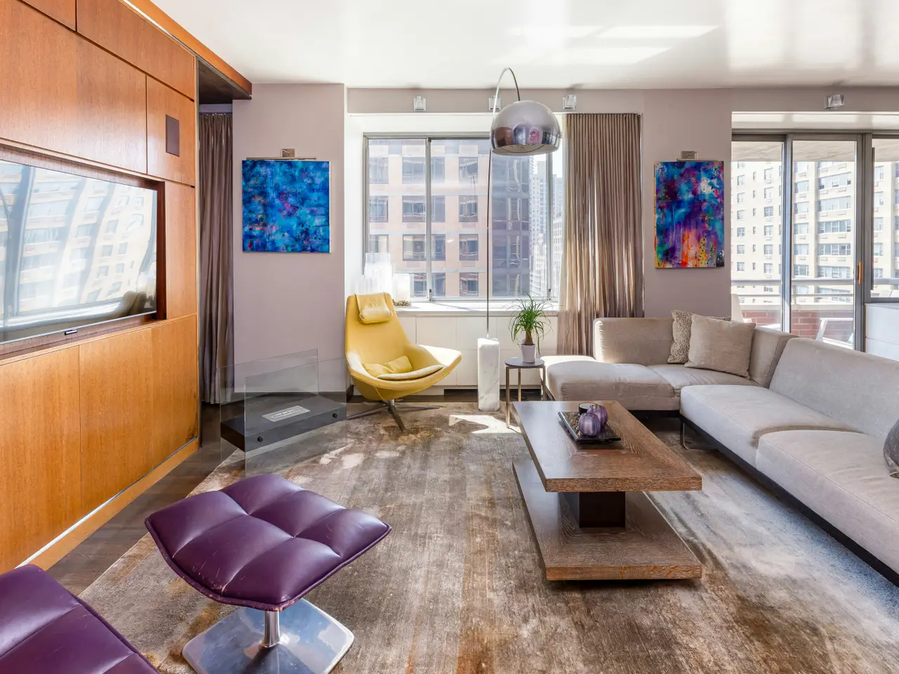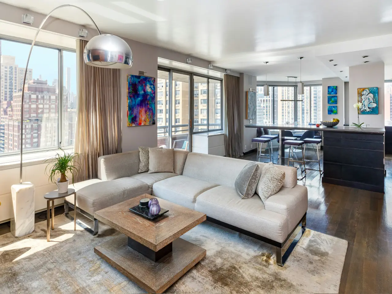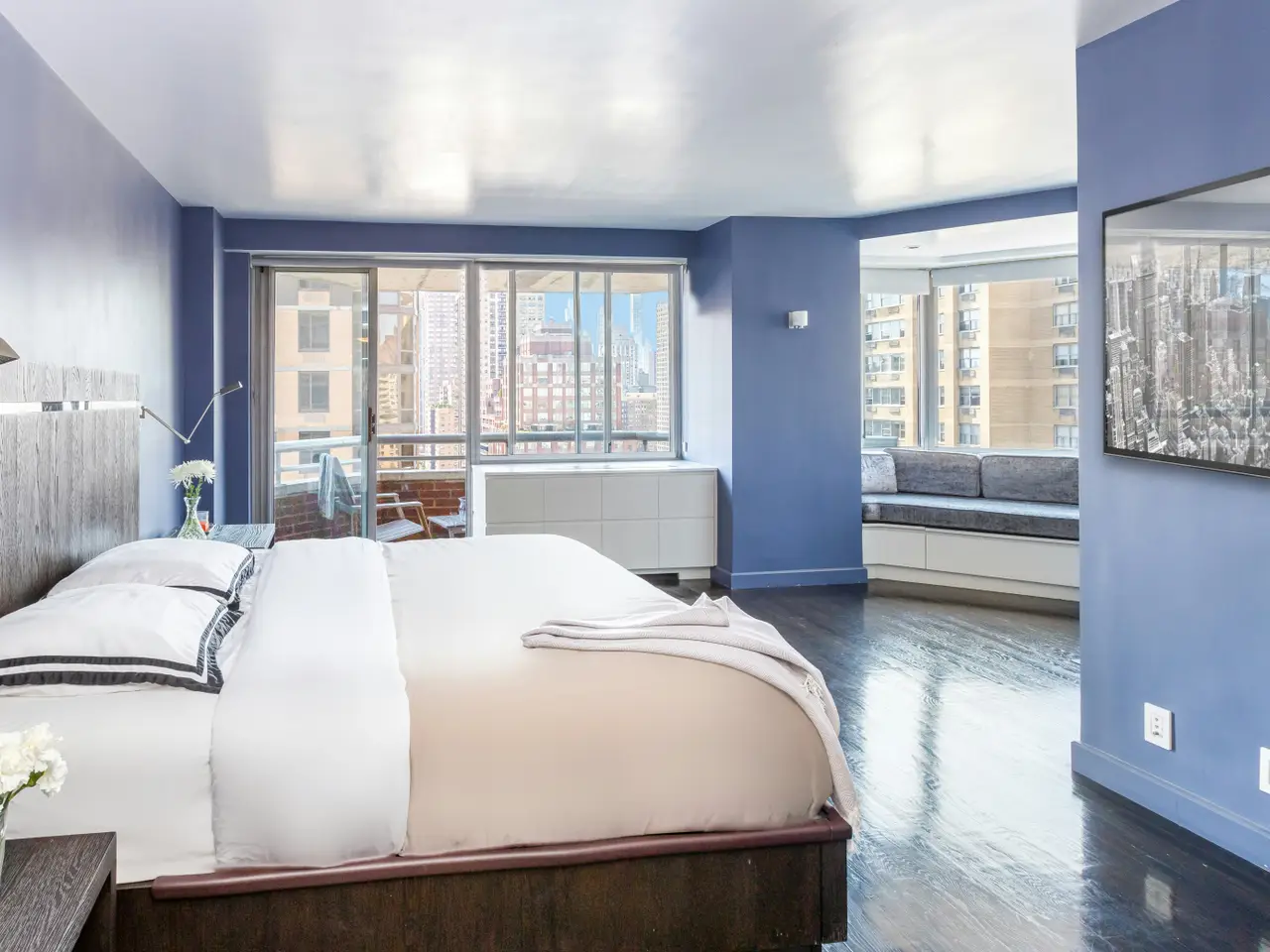 Expansive and Glamorous UES Duplex with Private Outdoor Space Measuring over 3,000 interior square feet and boasting an unbelievable five private outdoor spaces, this sensational duplex combines the scale of a townhouse with the light, views, and elevation of a high-floor home on the Upper East Side-housed in an impeccably run full-service condo with amenities. Every room opens to greenery or skyline vistas. Balconies extend from each bedroom, with additional terraces off the living and dining rooms-rare in any Manhattan residence. To the west, tree-lined 84th Street offers a glimpse of the Park. The main level is designed for entertaining, with fluid transitions that define the living, dining, lounge, and kitchen spaces while preserving an airy, loft-like openness. Light and views flow poetically across the rooms and out to multiple terraces-ideal for relaxing in the sun or grilling. At the heart of the home, the chef's kitchen is anchored by an oversized L-shaped island with seating for six, complemented by a banquette dining nook. Dark-stained cabinetry with stainless-steel accents conceals an appliance garage, built-in spice rack, and abundant storage. Appliances include a Sub-Zero 30" Classic Refrigerator, Wolf six-burner range and oven, Miele dishwasher, and multiple Sub-Zero beverage drawers. The adjoining formal dining room spans nearly 18 feet and opens to a balcony with an electric grill. With space for large gatherings and two Sub-Zero wine refrigerators, the main level was designed for entertaining. Completing this level is a secondary suite generous enough to rival many primaries. This flexible suite includes a home office with built-ins and a spacious guest bedroom or alternative primary with sitting area. The floor also features a discreet powder room and an additional bedroom with a full bath and dressing room. A dramatic floating staircase with a sculptural steel railing anchors the living space and leads gracefully to the upper level, basking in double-height city views. On the upper landing, a built-in desk for two, bathed in natural light, serves as a central home office hub, while a proper laundry closet with a Miele washer/dryer and shelving adds convenience. The primary suite is a private sanctuary of exceptional scale, framed by a terrace and a windowed seating area that invites slower starts to the day-perfect for coffee, reading, or even a light-filled mini gym or lounge. Expansive custom storage, including a walk-in closet, enhances both functionality and elegance. Two full bathrooms complete this retreat, a rare luxury in any home. One offers a Jacuzzi soaking tub and glass stall shower set beside a large window overlooking the city. The second features a walk-in shower and generous counter space. Both include radiant heated floors and sophisticated tilework. Across the landing, another generous bedroom with a windowed en-suite bathroom and excellent storage completes the upper level. Additional highlights include hammered metal sinks, curated architectural lighting, City Quiet Windows in the bedrooms, a generous pantry, and multiple walk-in closets. 401 East 84th Street offers the convenience of a full-time staff and resident manager, paired with a collection of amenities- all with no additional amenity fees. Residents enjoy a rooftop deck, fitness center, laundry facilities, children's playroom, and a versatile event space. The lobby was newly updated as well. The Dunhill all moments from the Q train, the neighborhood's dining scene, Carl Schurz Park, and top-rated private and public schools. Note: Buyer responsible for a reserve fund contribution equal to three months of common charges, due at purchase application submission. This sale uniquely includes ownership of 4 private storage units.