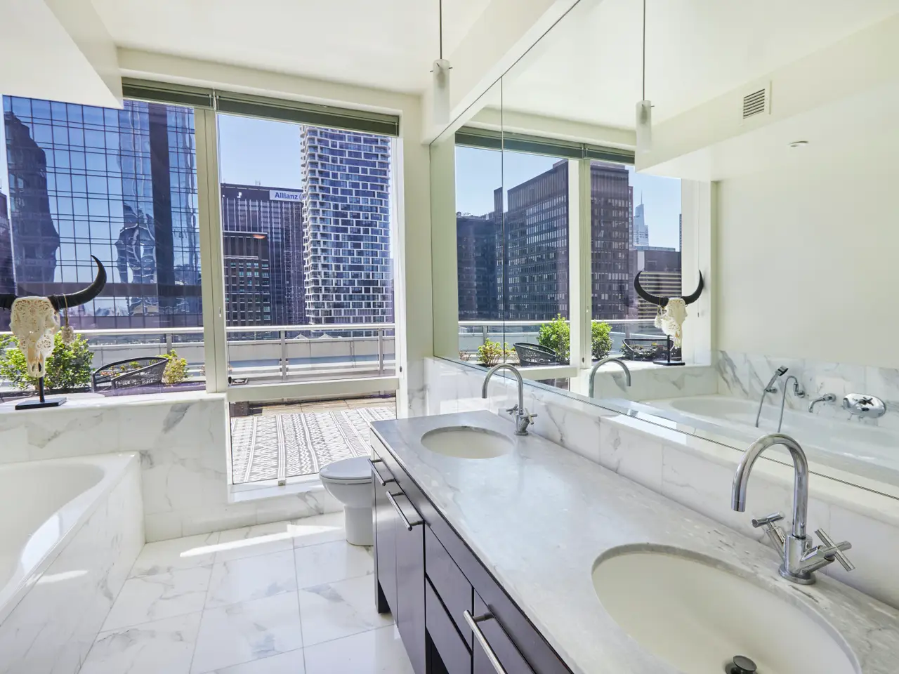 Presenting an unparalleled opportunity within the prestigious Park Imperial, this distinctive two-bedroom, two-bathroom residence spans 1,412 square feet and boasts a remarkable 492-square-foot terrace, creating a perfect space for both entertaining and personal enjoyment. Capturing radiant sunlight from triple exposures facing north, east, and south, this home offers a wonderful sense of airiness, accompanied by cityscape vistas that encompass Central Park and the Hudson River. Step inside to discover an array of features designed to elevate your living experience. Highlights in this corner unit include 10' floor to ceiling glass windows, vented washer/dryer, generously spacious closets, a contemporary and expansive kitchen, and hardwood flooring that graces the entire residence. The Park Imperial is one of New York's most prestigious condominiums with white glove services and amenities including a 24-hour doorman, concierge, private residents lounge, business center, and a state-of-the-art health club. Nestled in close proximity to Central Park, Lincoln Center, Columbus Circle, Whole Foods, and the City's finest shopping, entertainment, and cultural centers. Contact us today to schedule a viewing and witness the grandeur of this exceptional residence. Co-Exclusive