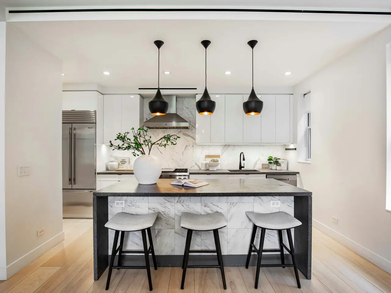 Meticulously renovated and loft-like 4 Bedroom, 3 Bath home situated at the Saxony, an architecturally significant building designed by the pre-eminent New York City architect Emery Roth. This home has undergone a complete State-of-the-Art renovation seamlessly blending Prewar elegance with modern finishes, boasting high ceilings, light and air. The gracious Great Room, short of 30' long by 18'9" wide, offers an abundance of space and light! The windowed open chef's eat-in kitchen features a gorgeous stone island, marble accents, top-of-the-line appliances, 6-burner Wolf stove, wine fridge, SubZero refrigerator, floor to ceiling pantry closet - an inviting place to cook and gather. Off the living room is the library or 4th bedroom, the bonus room that everyone wants. Perfectly situated in their own wing of the apartment, are the additional three bedrooms. The primary bedroom suite is oversized, 24'6" X 14'4, with a luxurious dressing area which leads to the primary bathroom giving total privacy to the suite. Adjacent to the primary bedroom is a fully equipped home office with large amount of custom storage. The second bedroom has ample closet space and a beautiful windowed marble bathroom. The third bedroom shares a stunning windowed bath with the Den/4th Bedroom. Conveniently located in its own nook off the bedroom wing is a washer/dryer and the third windowed bathroom. Every inch of this home has been planned and well thought. Rarely do we see such a wonderful residence! There are new windows, all new systems including heating, plumbing, gas and electric, 10" wide white oak wood paneled floors and central air conditioning with linear diffusers throughout. 250 W 82nd Street is a wonderful building ideally located in the heart of the Upper West Side, near transportation, museums, parks, gourmet food, and other shopping. This well-established coop has a new gym, individual storage units, bike room, playroom, live-in super, and a part-time doorman. The roof garden offers a magnificent retreat. Pet friendly