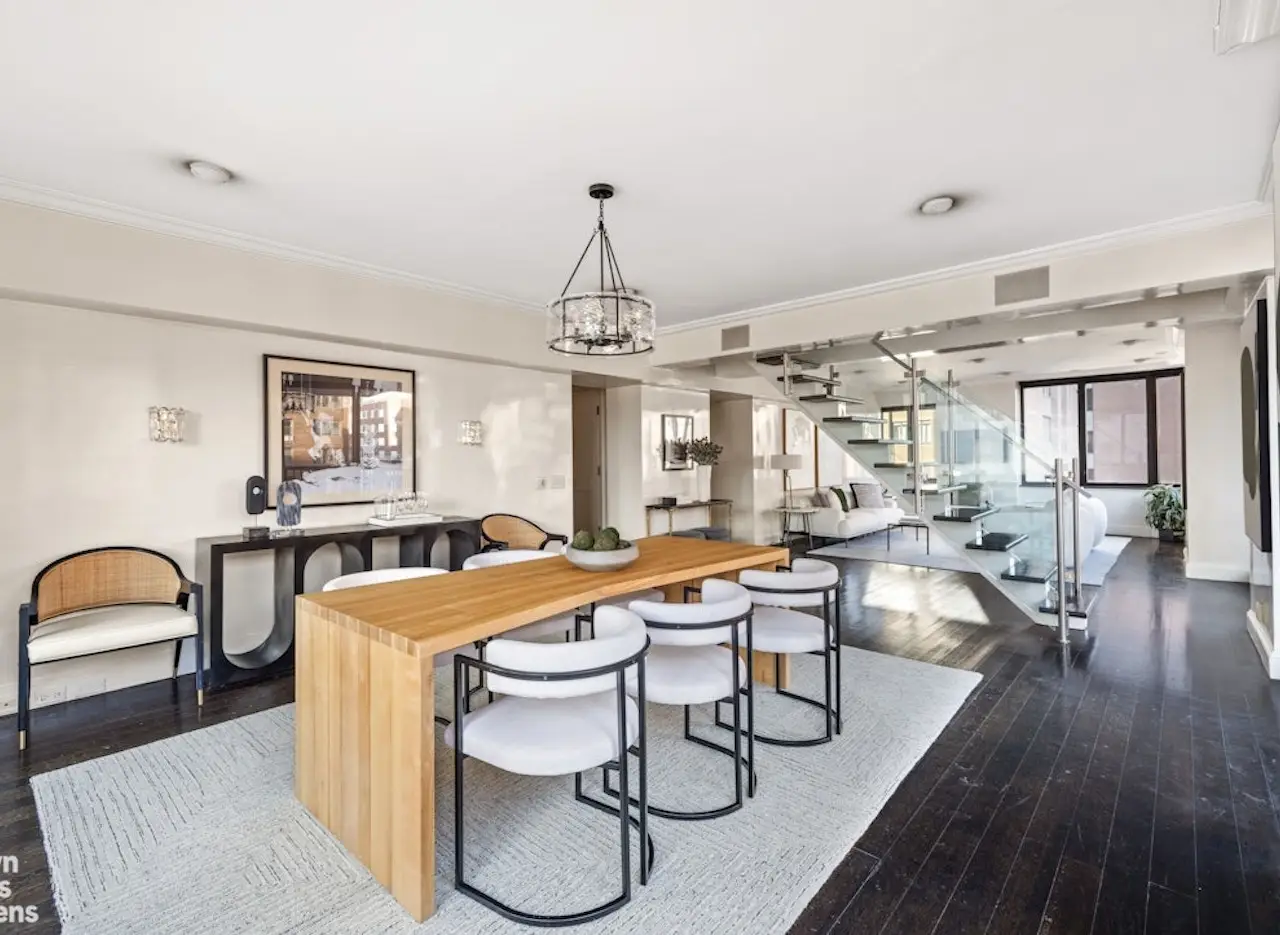 WOW DUPLEX RENTAL ON EAST END AVENUE This expansive 4,107 gross square foot, 12-room duplex offers a rare opportunity to rent one of the most unique homes on the Upper East Side. Featuring 4 bedrooms plus a staff room, 5.5 bathrooms, 2 home offices, 5 balconies, and all 4 exposures, this residence was thoughtfully combined from four apartments to create a layout with abundant storage, grand entertaining spaces, and privacy. Enter through a semi-private vestibule into the impressive 40-foot-wide double living and dining room, anchored by an elegant glass and wood staircase. From the moment you step inside, three exposures and two balconies overlooking East End Avenue fill the home with light. Dark wood floors, crown and base moldings, and oversized windows enhance the residence throughout. The sunny corner eat-in kitchen is fully outfitted with top-of-the-line appliances, including two Wolf ovens, a Wolf six-burner range, Bosch dishwasher, Marvel wine cooler, large Sub-Zero refrigerator, and an additional Sub-Zero mini fridge. A walk-in pantry, ample cabinetry, and space for a large table or island make it ideal for any cook. A powder room and small staff room with private bath complete this level. Upstairs, floor-to-ceiling windows welcome sunlight into a den or media room with open views north toward Carl Schurz Park and east toward the East River. The luxurious primary suite includes a balcony, curved corner windows with southern and eastern exposures, a dressing room, oversized walk-in closets, and a spa-like bathroom with double vanities, a walk-in shower, and a wall of windows. An additional home office is also located within the suite. Three secondary bedrooms, each with en-suite baths, are tucked away along a private hallway. A large laundry room with oversized washer/dryer, a kitchenette, and convenient elevator access are also on this level. Additional features include through-wall air conditioning with thermostatic controls and extensive closet space. 52 East End Avenue is a full-service luxury condominium with a 24-hour doorman/concierge, live-in resident manager, fitness center, central laundry, and bicycle storage. Located just two blocks from Carl Schurz Park and the East River Promenade, with easy access to the Second Avenue Subway, crosstown buses, and the FDR Drive. Pets welcome. Fees: First month's rent: $20,000 One month security deposit: $20,000 Credit check: $150 (per applicant) Move-in deposit (refundable): $1,000 Move-in fee: $300 Initiation fee: $120 Digital submission fee: $65