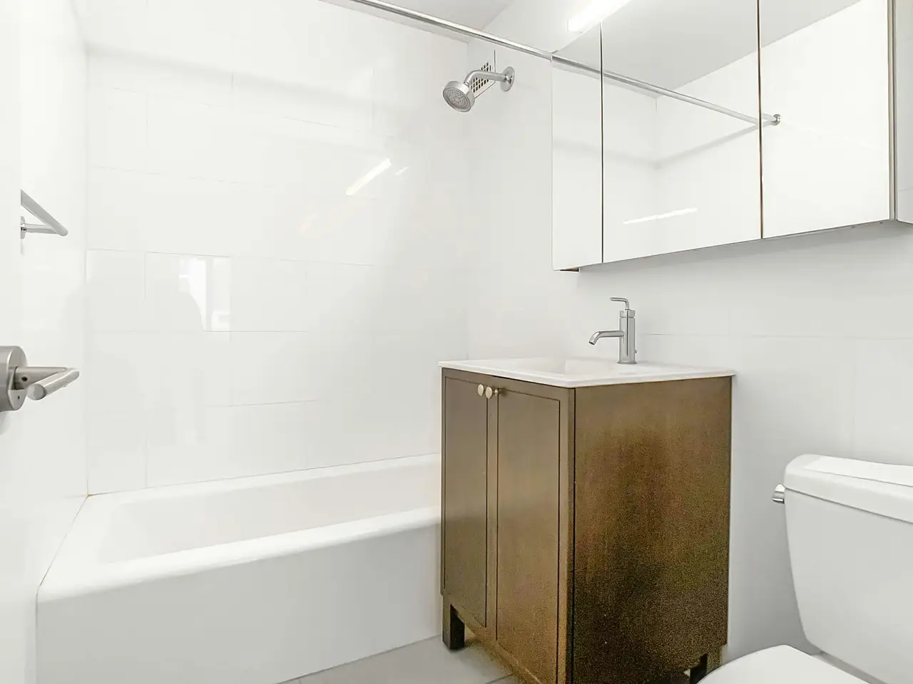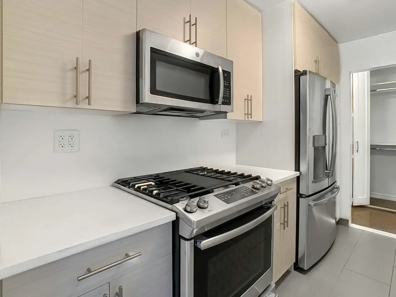 Extra-large one bedroom (over 900SqFt) with dining area and tons of closets. Hardwood floors throughout. Windowed kitchen and bathroom. Renovated kitchen offers custom cabinets, full-size stainless steel appliances, including a dishwasher and a microwave. White quartz counter-tops and tiled backsplash. Spacious bedroom fits a king size bed. Full service, 24Hr doorman building. Close to everything. Pets allowed.