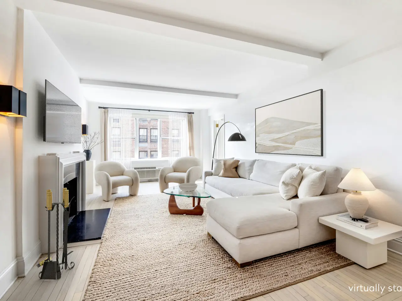 Maintenance includes electricity - a huge savings! In addition this seller is offering a 5 year Maintenance Credit of $500 per month (reflected in the advertised maintenance of $3,076). Welcome to residence 9A, a beautifully renovated two-bedroom, two-bathroom home located within the coveted Southgate community - a serene, tree-lined enclave bordering the East River. Overlooking 51st Street and Beekman Place, this impeccably maintained A-line residence evokes Paris in New York, offering an ideal layout and sunny southern river, park, and city views. A gracious entry foyer opens to an expansive living room highlighted by a gorgeous wood-burning fireplace, hardwood floors, and beamed ceilings - a perfect blend of prewar character and modern sophistication. The windowed, open chef's kitchen is outfitted with custom cabinetry, solid brass hardware, open shelving and an expansive center island, complemented by top-of-the-line appliances including a Sub-Zero refrigerator, Bosch dishwasher, and Viking 8-burner range with dual ovens and griddle. The primary suite features two custom outfitted walk-in closets and a windowed Carrara marble en-suite bath with Dornbracht fixtures and walk-in rain shower. Not to be overlooked, the north facing second bedroom is large enough to accommodate a king-sized bed and features a large closet and en-suite tiled bathroom with walk-in shower. Modern conveniences include an in-unit stacked washer/dryer, through-the-wall air conditioning and an August keyless entry system. Designed by the renowned architect Emory Roth in collaboration with developers Bing and Bing, 433 East 51st Street is a part of the Southgate community which comprises five pre-war, full-service cooperative buildings situated within the tranquil enclave of Beekman Place. Bordering the East River and adjacent to the pet-friendly Peter Detmold Park, a distinctive feature of this complex is its beautifully maintained park-like private gardens. These lush, landscaped areas provide residents with serene green spaces, enhancing the community's appeal and offering a peaceful retreat from the bustling city environment. Additional Building Amenities: Full-Time Door Staff, Resident Manager, Laundry Room, Bike Room, Private Storage (as available), and On-Site Management Additional Highlights: Electricity is Included in Maintenance (a significant savings), 80% Financing Permitted, Pied-à-Terre and Subletting are Allowed. This is a Pet-Friendly Community Financial Details: -A 5-year maintenance credit of $500 per month is being offered by the seller (a $30k credit at closing); this is reflected in the $3,076.00 advertised maintenance -A capital improvement assessment of $444.60 through July 2027 will be paid off by the seller at closing - There is a 2% flip tax to be paid by buyer Equally suited as a refined primary residence or an elegant pied-à-terre, this remarkable prewar home embodies timeless grace and understated grandeur in one of Manhattan's most sought-after historic neighborhoods.