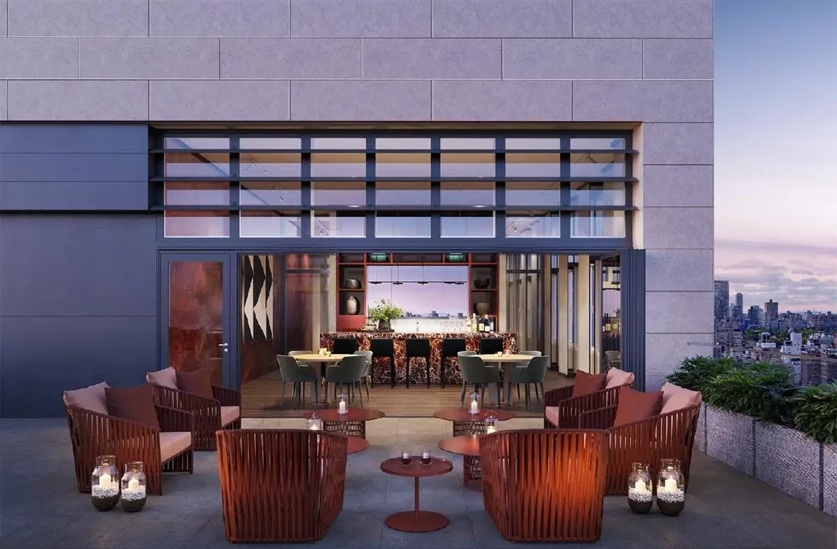 Welcome to an incredibly rare offering at The Leyton. This one-bedroom duplex residence is defined by soaring 19'6" ceilings, dramatic scale, and luminous floor-to-ceiling windows. This architecturally striking home combines loft-like proportions with sophisticated design details by renowned interior designer Elena Frampton. The open-concept layout features a custom Poggenpohl kitchen outfitted with polished marble countertops and a full suite of integrated Gaggenau appliances, ideal for both everyday living and elevated entertaining. The lofted primary bedroom offers space for a king-sized bed and includes a spacious walk-in closet and a 5-piece ensuite bathroom finished with radiant heated floors and refined fixtures. A secondary full bathroom on the first floor is clad in Aged Dark Nature stone, accented by Fantini hardware. Framed by panoramic exposures, this one-of-a-kind residence captures beautiful city views. The light moves effortlessly through the home from sunrise to sunset. Every detail has been considered for modern comfort, with high-performance windows, bespoke air systems, and hydronic radiant floor heating throughout. Residents of The Leyton enjoy access to a suite of refined amenities curated by Alexandra Champalimaud, whose work draws inspiration from the grand boutique hotels of the Upper East Side. On the 24th floor, the Brandy Room offers a series of indoor and outdoor spaces for entertaining, including a cocktail terrace, a private dining room with a fully equipped butler's pantry, a solarium, views of Central Park and an expansive Sun Terrace amp; Grille overlooking the East River. The building also features a private fitness studio with top-tier equipment, a 24-hour attended lobby, concierge services provided by BHB, and conveniences such as private storage, bicycle storage, mail/package rooms, and a dedicated Paw Spa for four-legged residents. Positioned just off East 63rd Street, The Leyton stands as a distinctive new landmark on the Upper East Side. Designed by architect Manuel Glas, the building evokes a timeless elegance with Art Deco influences, offering just 38 finely crafted residences in one of Manhattan's most exclusive enclaves.