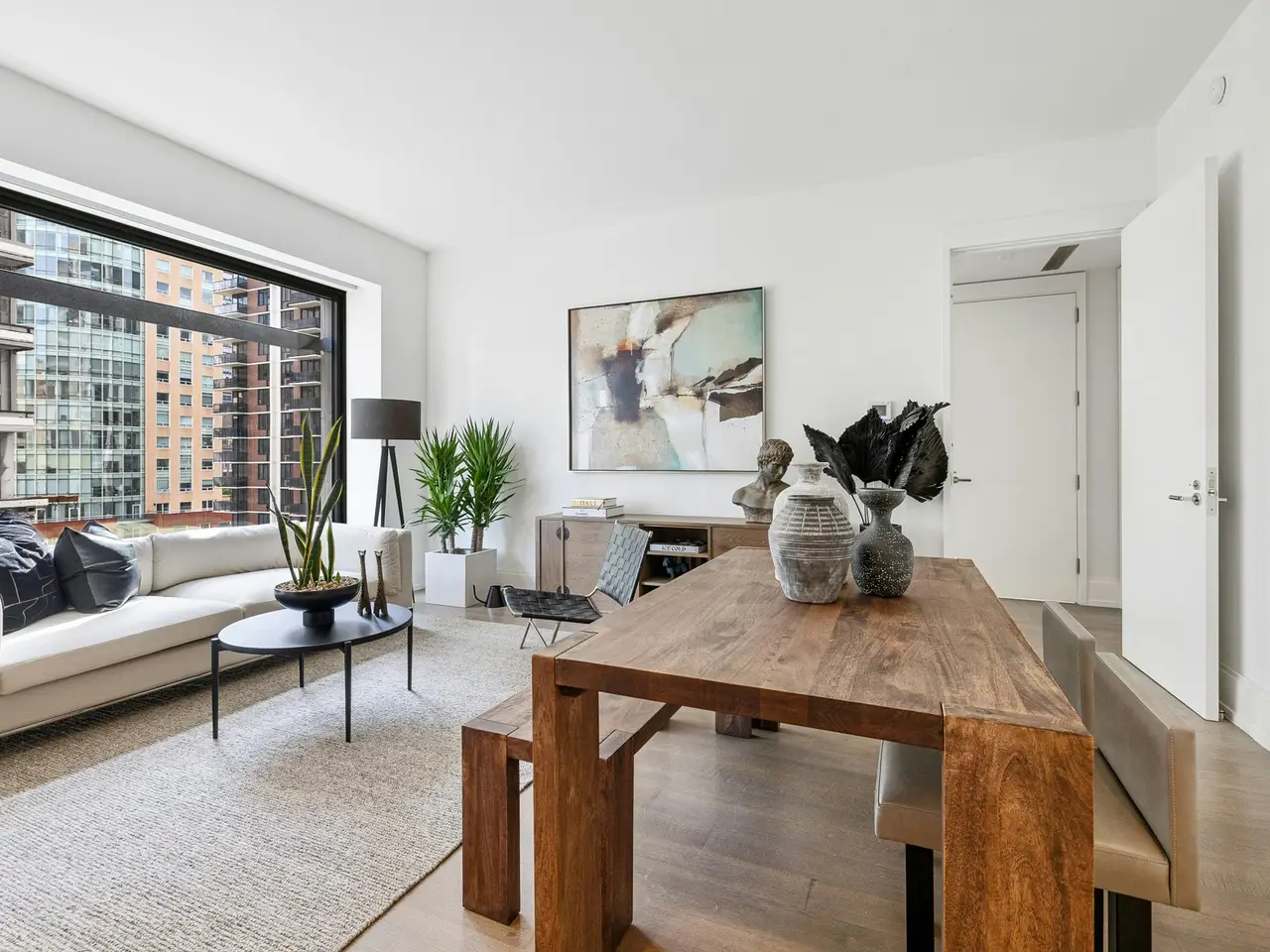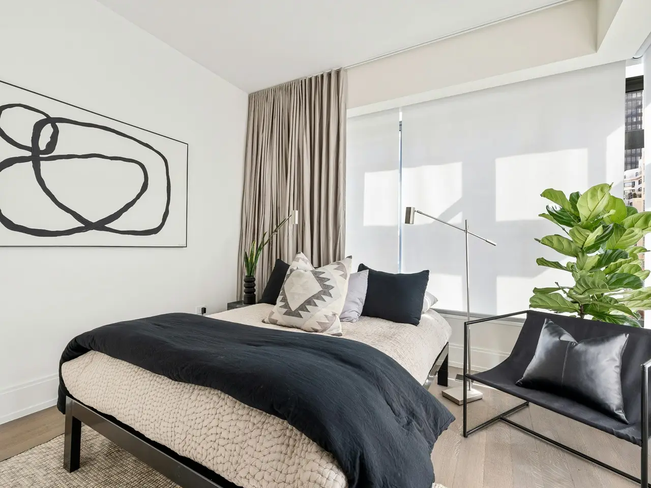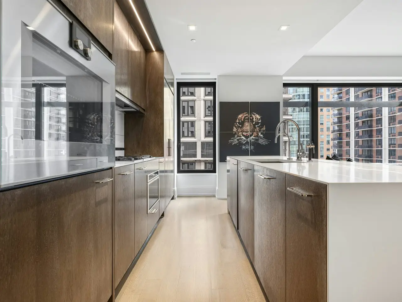 This double corner unit spans 1,447 square feet, featuring two bedrooms and two-and-a-half baths. Enter through a gracious foyer leading to a southern-facing, light-filled living/dining room, perfect for entertaining. With sun-soaked city views to the south, east, and west, this residence boasts a CookFox-designed kitchen equipped with a professional-grade Gaggenau appliance suite, U-line wine fridge, Dornbracht faucets with a filtered instant hot/cold waterspout, custom cabinetry, ample storage, Caesarstone countertops, and a Bianco Dolomiti marble backsplash. The primary bedroom has eastern and southern exposures, a large windowed walk-in closet, a separate full-sized closet, and an oversized bathroom featuring a glass-enclosed shower, soaking tub, Bianco Dolomiti marble, Calacatta Gold mosaic flooring, Waterworks fixtures, and custom lighting by CookFox. The spacious second bedroom enjoys western and southern exposures, an ensuite bath, and a full-sized closet. This home features 10-foot ceilings, oversized city-quiet Low-E glass windows with motorized shades, solid core doors with Nanz hardware, ample closet space, and 5-inch wide-plank solid oak flooring throughout. It includes a full-sized LG washer/dryer and a high-performance multi-zone heating and cooling system. Built in 2014, 301 East 50th Street is a 57-unit, LEED-certified, limestone-clad boutique condominium with amenities including: 24-hour concierge and doorman Live-in resident manager State-of-the-art fitness center with steam rooms, sauna, private treatment rooms, tea lounge, terrace, and yoga deck Cold storage Central laundry Pet grooming Bike storage State-of-the-art air filtration This wonderful Midtown location benefits from the conveniences of Midtown East and the quiet charm of Beekman Place and Sutton Place. It is surrounded by vibrant restaurants, trendy bars, incredible shopping, and near multiple subways (E/M/6), fitness studios, the East River, and the brand-new East Midtown Greenway.