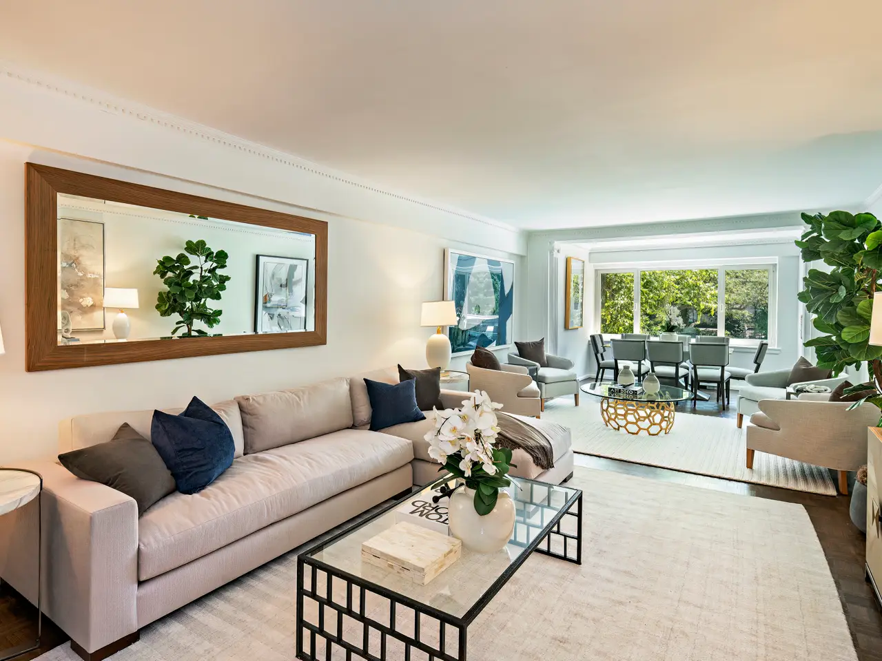 Overlooking the greenery of Gracie Mansion, Apartment 2D is a sunny, spacious two bedroom home with both east and west facing windows. The apartment has just been painted and the public area floors redone. New flooring has been installed in the entrance gallery, kitchen and breakfast room; the beautiful parquet living room floor has been refinished. The current configuration has the two bedrooms and their shared bath off a private hallway. The living/dining/kitchen/breakfast room/powder room and entrance gallery flow in a way that is perfect for entertaining or everyday living. Upon entering Apartment 2D, there is a wall of three large closets to the left and a powder room to the right. Just beyond the gracious entrance gallery with its new flooring, there is a dining room/breakfast room which can also function as a home office-or both. There is a large walk-in pantry here with plenty of space for utilities or storage of any kind as well. Just beyond, the windowed kitchen faces west and overlooks the new architecturally landscaped garden. The nearly 31-foot dramatic living room serenely overlooks the trees on East End Avenue and the gardens of Gracie Mansion. There is plenty of space for several seating areas and a large dining table. Opposite and just beyond the living room, off a private hallway, are the two additional very well-proportioned bedrooms with large west-facing single pane tilt and turn windows. They share a center hall bathroom. The primary bedroom has extraordinary storage space with two large walk-in closets and three regular closets. There is a laundry room adjacent to the apartment and there is an additional laundry room in the basement. Additional amenities include the heated rooftop swimming pool, fitness center, bike room, attended garage with preferable rates for residents, the new garden with outdoor seating, playroom and library lounge with a pool table. A storage bin transfers with the apartment. There is central air conditioning and the apartment pays $241/month for electric. Pets are welcome. The highly coveted Gracie Towers is ideally located on the corner of East End Avenue and 88th street providing easy access to the East River Promenade. This is a well-designed building with a beautiful lobby. It is fully serviced with a 24-hour doorman, concierge, and live-in resident manager. Gracie Towers is nearby several grocery stores such as Heavenly Market, CTown Supermarket, Morton Williams and D'Agostino. There are endless options to grab coffee or a bite to eat; for example, there is Arturo, Felice 83, Penrose, Eat Pretty, Starbucks, and The Mansion.