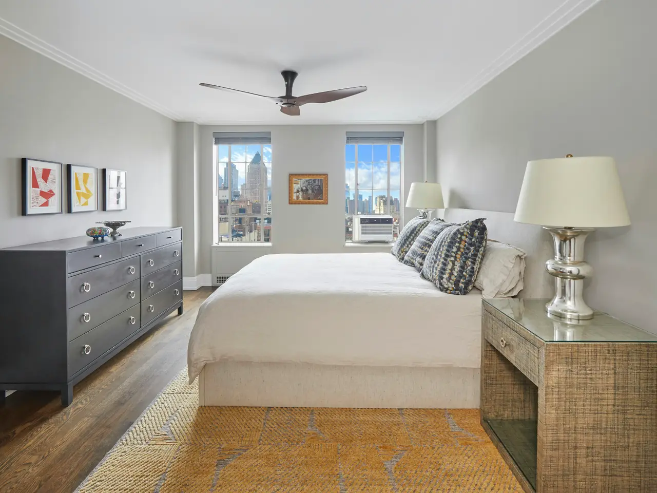 SUNNY PREWAR GEM Located in the prestigious Parc Vendome, this spacious residence offers approximately 1,645 square feet of elegant living space with open skyline views. THE APARTMENT - A grand, 19' x' 23' Great Room with open south and east exposures looking over the Clinton/Hell's Kitchen and Hudson Yards neighborhoods. - Tremendous sunlight from 11 elegant casement windows throughout. - Gorgeous hardwood floors and high beamed ceilings. -Gourmet kitchen with marble countertops, limestone floors, Subzero refrigeration, Viking gas range, Wolf warming drawer, and Miele dishwasher. - Over 235 square feet of storage between two primary bedroom closets, 2nd bedroom closet, a deep pantry with wine fridge and foyer storage with enough room to accommodate bikes, luggage and strollers. - Wonderful winged bedroom layout for privacy - Gracious primary suite featuring a windowed master bath with radiant heated marble floors, oversized shower, and double-sink vanity. - Split second bedroom with alcove study area and adjacent second bath. - Home office area with a 9' long built in desk and extensive file and book storage - In-Unit Stacked Miele washer dryer and adjacent linen closet. THE BUILDING - Built in 1931, the Park Vendome is a luxury complex of four buildings with separate entrances. - Full-time doorman and live-in Resident Manager. - Access to beautifully maintained formal gardens with a fountain. - Seasonal rooftop sun decks with breathtaking views. - Amenities include a Billiards Room, Music Room, Library, Card/Game Room, rentable banquet room, dining room, and kitchen for events - 24-hour laundry, storage bins, and bicycle storage available for a fee (pending availability). THE NEIGHBORHOOD - Moments from Columbus Circle, Whole Foods, Equinox, and the Jazz Center at Time Warner. - Close to the renowned dining and nightlife of Hell's Kitchen and the Upper West Side. - Near cultural landmarks such as Carnegie Hall and Broadway theaters.