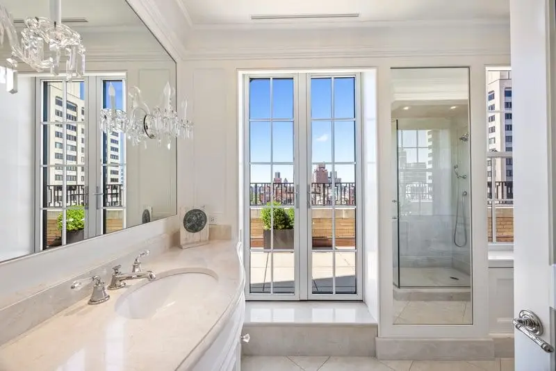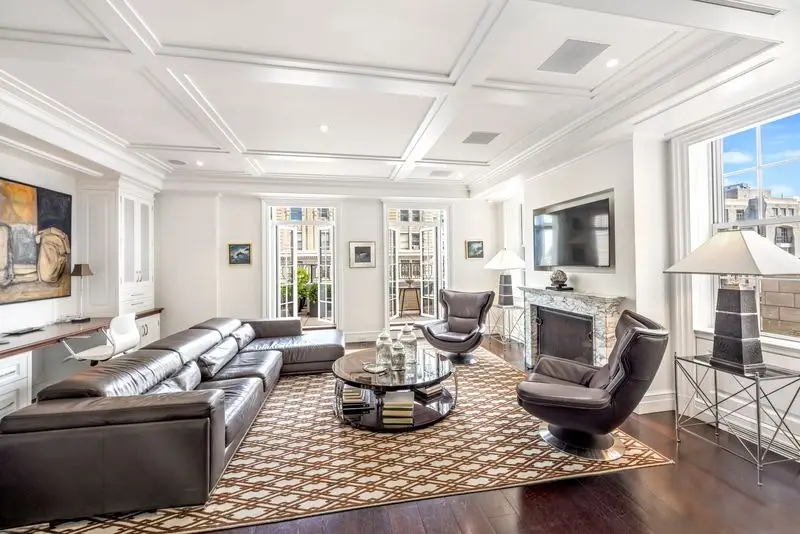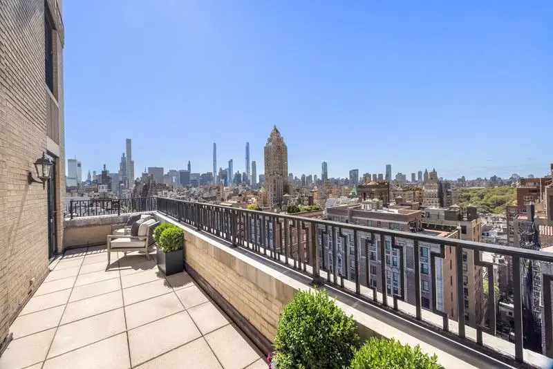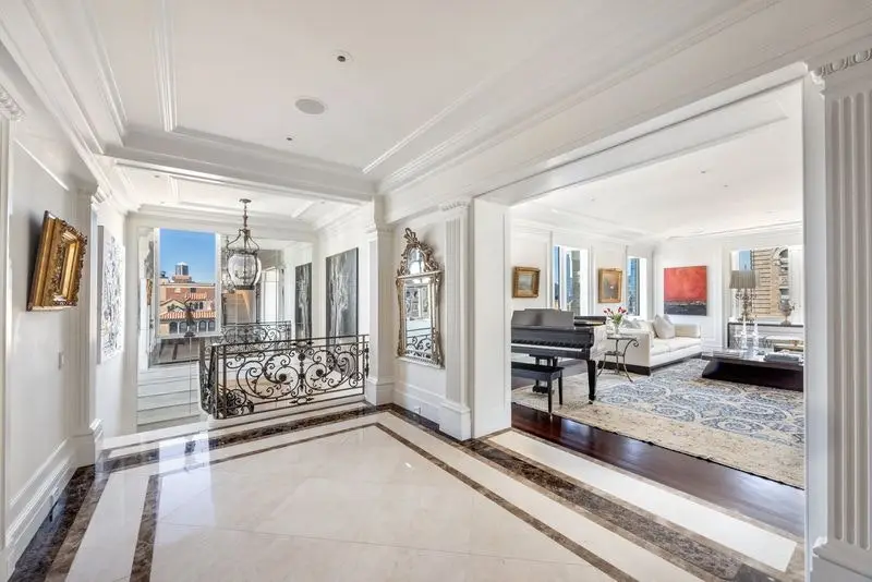 TRIPLE MINT 6,985 SQ FT. PENTHOUSE Perfectly situated in one of Park Avenue's most prestigious white-glove cooperatives, this extraordinary penthouse has been renovated to perfection and boasts 6,985 square feet of interior space and 1,300 square feet of beautifully landscaped terraces. The home enjoys magnificent open views spanning westward to Central Park and capturing the Manhattan Skyline to the south. The residence consists of 14 rooms, 5 bedrooms, 6 full bathrooms, and 2 powder rooms. Natural light stream in from all four exposures throughout the day. The 16th Floor: A private elevator landing opens into a dramatic circular marble gallery, anchored by a sweeping staircase with a finely wrought bronze balustrade. To one side, a handsome paneled mahogany library with a wood-burning marble fireplace and three French doors opens to a western terrace facing Central Park. Adjacent, a large and inviting corner family room has access to an additional landscaped terrace. At the heart of the home, the spectacular chef's kitchen is designed for both everyday living and grand entertaining. Outfitted with custom cabinetry, expansive Carrara marble surfaces, and top-of-the line appliances, it provides both elegance and functionality. A private office , powder room and internal elevators complete this level. The 17th Floor: Ascending the marble staircase-or arriving by elevator to a private elevator vestibule-guests are welcomed into an expansive marble gallery leading to an impressive living room and an elegant circular dining room. Perfectly proportioned and filled with natural light streaming in through oversized picture windows, the living room enjoys triple exposures and striking city views. The dining room, distinguished by mahogany inlaid floors and a marble wood-burning fireplace, sets the stage for unforgettable gatherings. Supporting these grand entertaining spaces are a fully equipped butler's pantry, staff quarters or fifth guest suite with full bath, and an additional powder room. The 18th Floor: The enormous private bedroom floor has a total of four bedrooms and five bathrooms. The sprawling primary suite has dual over-sized bathrooms and vast amounts of closet space. The suite has triple exposures and is surrounded by a beautifully landscaped terrace with open views toward Central Park. There are three additional corner bedrooms with an en-suite marble baths and walk-in closets. All of the bedrooms have impressive open views and are pin-drop quiet. A spacious laundry room completes this level of the residence. The Building: Built in 1930 and designed by renowned architectural firm Sloan & Robertson, 895 Park Avenue is a prestigious white-glove cooperative in the heart of the Upper East Side Historical District. Residents enjoy impeccable white-glove service, including 24-hour doormen, porters, a resident manager, a state-of-the-art gym, and a squash court. The building permits 50% financing, is pet-friendly, and there is a 3% buyer-paid flip tax.