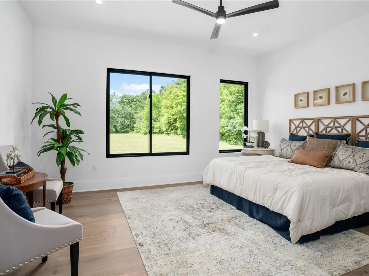 Introducing this extraordinary 5 bedroom, 4 bathroom, custom built home by Atlantic Design, situated on over 3 acres within an exclusive gated community of Dylan’s Grove. You are welcomed with a beautiful front porch that seamlessly flows into floor to ceiling premium Fibrex Composite windows, known for their superior insulation, durability, and low maintenance. Inside you will find an expansive living room with 18’ vaulted ceilings, filled with natural light, accompanied by an indoor vented 50” gas fireplace. Every detail was thoughtfully considered from the grain-matched wood cabinetry in the kitchen, custom-designed by Straw & Co Woodwork, to the upgraded Fisher and Paykel appliances, to the high-end fixtures and hardware that ties the space together. Adjacent to the kitchen is the butler’s pantry, offering additional custom cabinetry, a second sink refrigerator, dishwasher, and extra countertop space and storage. Also included in this space is a chic wet bar, perfect for crafting cocktails and hosting gatherings. This home is not only lavish but also environmentally conscious, boasting energy-efficient features throughout. From high-performance windows to efficient 18 Seer, 2 stage air conditioner systems with wi-fi thermostats, every detail has been carefully considered to minimize energy consumption without compromising comfort. The home has also been pre-wired for an alarm system, (6) gigabit ethernet ports, a wifi system, (4) exterior cameras, smart door locks, and automated lights. The exterior of the home is equally captivating, with an oversized covered lanai-already pre-wired and plumbed for a summer kitchen. The outdoor gas fireplace with stone veneer makes it a perfect sanctuary for those looking to cozy up and soak up the panoramic views. Schedule your private tour today and experience the epitome of luxury living.