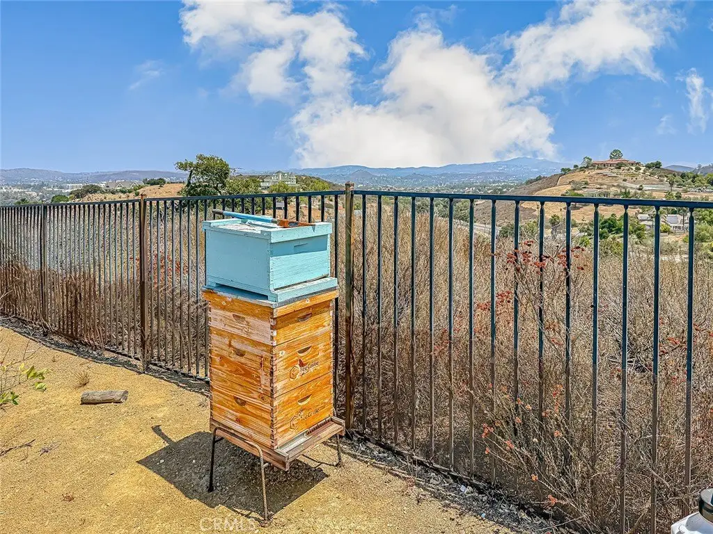 Welcome to the exclusive gated enclave of Lynn Oaks Estates. This stunning residence is perched atop a long private driveway and offers breathtaking surroundings on approximately 1.5 acres. This one-of-a-kind property includes a working beehive for fresh honey, a charming chicken coop, and potential building opportunity, with the possibility of a separate access driveway via a neighboring easement with breathtaking 360-degree view—enjoy sunrise to sunset views of the surrounding mountains, rolling hills, and city lights. Behind elegant double entry doors adorned with leaded glass insets, you're greeted by a showstopping circular wrought-iron staircase, setting the tone for the sophistication throughout. The formal living room boasts dramatic cathedral ceilings, a custom fireplace, and ornate iron-accented windows that flood the space with natural light. An arched passageway leads to the formal dining room, perfect for hosting elegant dinners. Adjacent, the butler’s pantry flows seamlessly into the heart of the home—an expansive gourmet kitchen equipped with stainless steel appliances, a large walk-in pantry, and a generous center island, all open to a spacious dining area and inviting family room complete with fireplace, wet bar, and plantation shutters. Downstairs also includes a versatile office/gym, a guest bedroom, and two baths, offering comfort and functionality for family and guests. Upstairs, the massive primary suite serves as a private sanctuary featuring a balcony with a view of the backyard, an ensuite bath with dual vanities, a soaking tub overlooking the backyard, a separate shower, and a private water closet. Additional bedrooms include one with a private ensuite and two sharing a Jack-and-Jill bath, all designed with comfort and style in mind. Step outside to a newly sodded backyard, perfect for entertaining with an elevated platform ideal for al fresco dining. Venture up the tiered slope via a scenic staircase that leads to a breathtaking 360-degree vista—enjoy sunrise to sunset views of the surrounding mountains, rolling hills, and sparkling city lights. Don’t miss your chance to own a truly unique property offering land, and limitless lifestyle potential in one of the area’s most desirable gated communities.