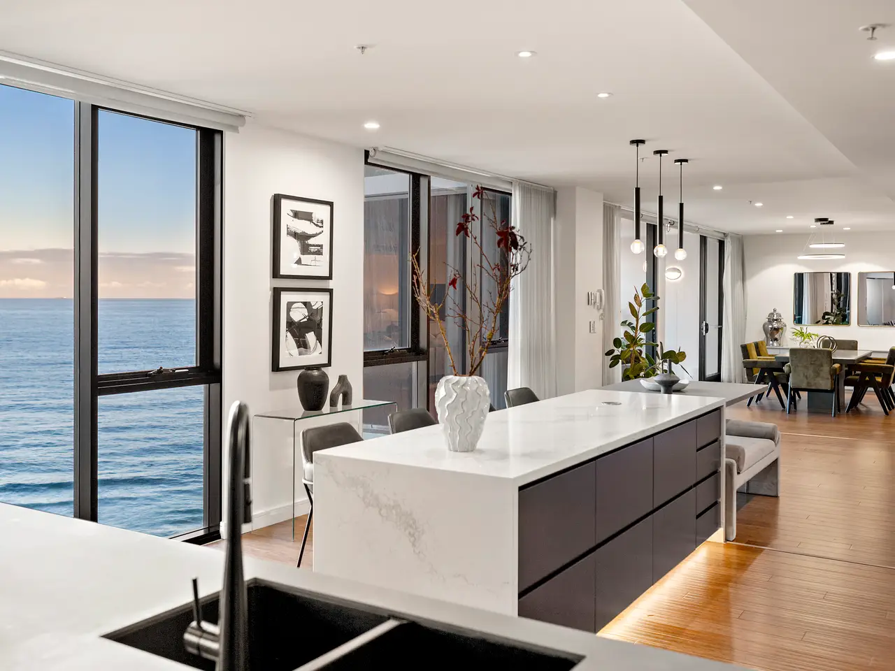 A whole floor oceanfront apartment offering 428sqm of unsurpassed world-class opulence presiding over the Pacific Ocean has hit Newcastle's residential market, and it is an offering this region has never seen before. Occupying the entire twelfth floor, since its initial inception this bespoke masterpiece has been designed and constructed to embody a breathtaking grandeur of international standards, combining six individual apartments into one high-end oceanfront inner-city residence. A secure lift announces your arrival where you will be greeted by a just-completed 2024 renovation lavished in rich luxury, global materials, and a wow-factor panoramic views across the Pacific Ocean, showcasing rolling waves and the annual whale migration. Your exclusive floor is complete with an in-home theatre, private gym, showstopping wine cellar, four hotel standard bedrooms, a state-of-the-art entertainer's kitchen fitted with top-tier appliances and high-end finishes, while surrounded by a contemporary open-plan design featuring multiple living spaces that integrate with two of the three outdoor terraces and invite sophisticated and unforgettable soirees. Newcastle's most prestigious and generous apartment is perfectly placed for effortless access to the beach, a wealth of fine dining options, designer stores, and the vibrant city centre. Start your day with sound of the surf and finish it watching the sunset over the cathedral, this views on offer are the best in the city. While everything you could desire to live a full and prosperous life is delivered right to your fingertips, this residence also boasts four personal and secure car spaces which is a rare commodity in the highly sought-after East End. This is truly a once-in-a-lifetime opportunity to acquire residential excellence in such a distinctive and unique location, gifting an instant passport to an international harbour, the Pacific Ocean and a cosmopolitan lifestyle. - 428sqms of distinguished luxury presiding over the Pacific Ocean - Recent (2024) renovation completed to international standards and fitted with high-end global materials and fixtures - North Easterly unobstructed panoramic sea views from the front and city and harbour sunset views from the rear - Chef's kitchen finished in Caesarstone Statuario Maximus and including a full suite of top-tier Miele appliances, right down to the coffee machine - Four first-class hotel standard bedrooms supported by five opulent bathrooms - The master-suite fit for royalty with 'his and her' ensuites and three-wardrobes, one featuring a dressing room - Secure lift delivering you directly to your entire personal twelfth floor - Your own exclusive gold class home theatre - Grand Cru wine fridges and a feature wine cellar room catering for up to 500 hundred bottles - Newcastle Airport is a thirty-minute drive, Sydney airport and CBD is a two-hour drive, and the Hunter Valley Vineyards are under an hour away - Top tier schools within close proximity: Newcastle Grammar School 0.41kms, Newcastle East Public School 0.73kms, Newcastle Grammar Park School Campus 2.18kms