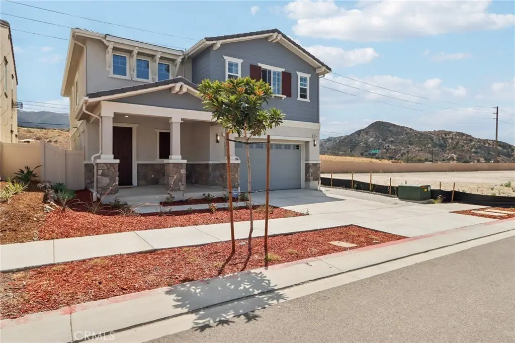 Welcome to this newly built two-story home offering 5 bedrooms and 3 bathrooms across 2,387 sq ft of thoughtfully designed living space. The main level features an open floor plan with a spacious living and dining area, a modern kitchen with quartz countertops, a large center island, a single basin sink, stainless steel appliances, soft-close cabinetry, and a walk-in pantry for ample storage. Stylish laminate flooring flows throughout the downstairs, while plush carpet in bedrooms enhances the upstairs comfort. High ceilings, recessed lighting, central A/C and heat, and an Energy Star–qualified smart thermostat create both elegance and efficiency. The luxurious master suite boasts dual sinks, a soaking tub, a walk-in shower, and a generous walk-in closet. A versatile loft and an upstairs laundry room with washer/dryer hookups add convenience, while the downstairs bedroom provides flexibility for guests or multigenerational living. Outside, enjoy mountain views, a welcoming front porch, and access to community amenities including a pool, park, and guest parking—all with low HOA fees. Complete with a 2-car attached garage and a prime location near schools, shopping, and dining, this home is the perfect blend of comfort, style, and functionality.
