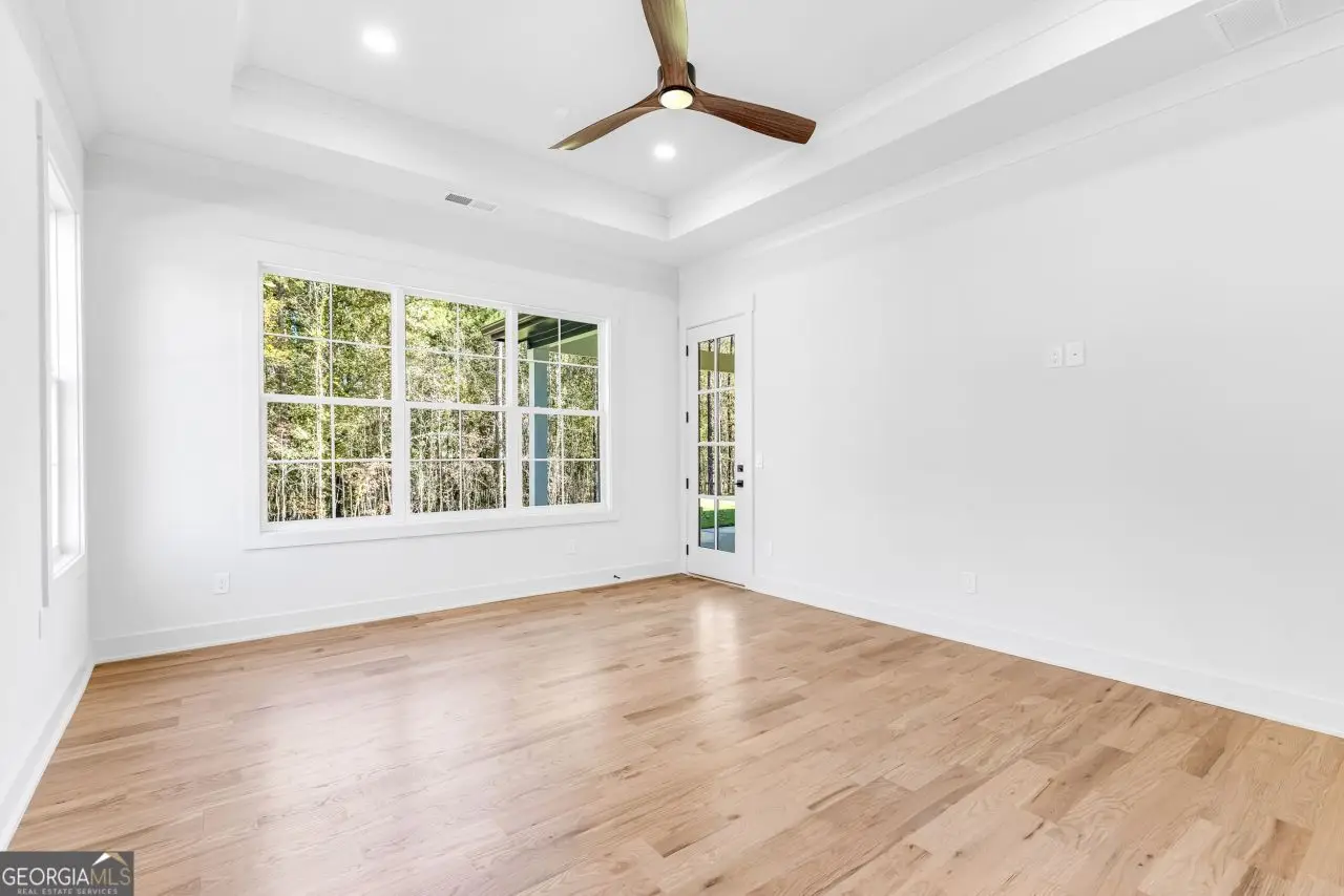 Welcome to Refined Living in Arbor Springs. Experience casual elegance in this beautifully crafted home located in the prestigious Arbor Springs community. Perfectly situated on a serene lot, this home offers an ideal blend of luxury, comfort, and thoughtful design-perfect for entertaining or enjoying peaceful everyday living. Step into a bright, open-concept layout featuring 10-foot ceilings, 5 red oak hardwood floors, and custom trim work throughout. At the heart of the home is a stunning gourmet kitchen with quartz countertops, a wine station, an oversized center island with seating, and high-performance appliances. A very large walk-in pantry offers ample storage and convenience, ideal for any culinary enthusiast. The kitchen flows seamlessly into a spacious great room, complete with a cozy fireplace and elegant boxed ceiling beams crafted from cedar, adding warmth and natural character to the space. A custom sliding glass door system opens to a covered rear porch, providing a smooth transition between indoor and outdoor living-ideal for year-round entertaining. The main-level Owner's Suite is a private retreat featuring a spa-inspired bathroom with a freestanding soaking tub, frameless glass shower, and generously sized custom closets. The laundry room is thoughtfully placed away from the Owner's Suite for added privacy and practicality. Also on the main level, you'll find a flex room, perfect for a home office, study, or formal dining room, as well as a convenient half bath for guests. Upstairs, you'll find three spacious bedrooms, each with its own private full bathroom, offering comfort and privacy for family members or guests. A large bonus room adds versatility for media, recreation, or additional living space. Notable features include: Cedar ceiling beams in the great room, Spray foam insulation for energy efficiency, Custom cabinetry and built-ins throughout, Glass-enclosed showers in every bathroom, Mudroom for everyday organization, 3-car garage with extra space for storage, Pre-wired for EV charger, sound system, and security cameras, Enhanced lighting in bedrooms and flex spaces, Backyard is pool-ready, offering the ideal setting for your future oasis, Professionally designed with premium finishes-and still time to personalize selections to match your style. As a resident of Arbor Springs, enjoy access to resort-style amenities including a clubhouse, pool, tennis and pickleball courts, parks, walking trails, and playgrounds. Conveniently located near top-rated schools, the new Publix center, Ashley Park, and I-85, with just a 20-minute drive to Hartsfield-Jackson International Airport and Atlanta. PREFERRED LENDER OFFERING LENDER FEE CREDIT! Don't miss the opportunity to own this stunning luxury home! Schedule your showing today!