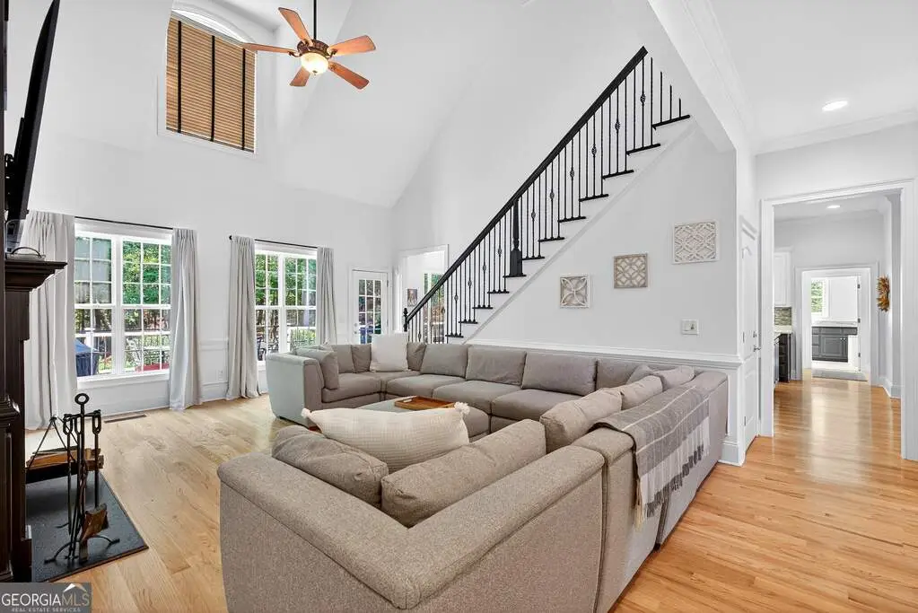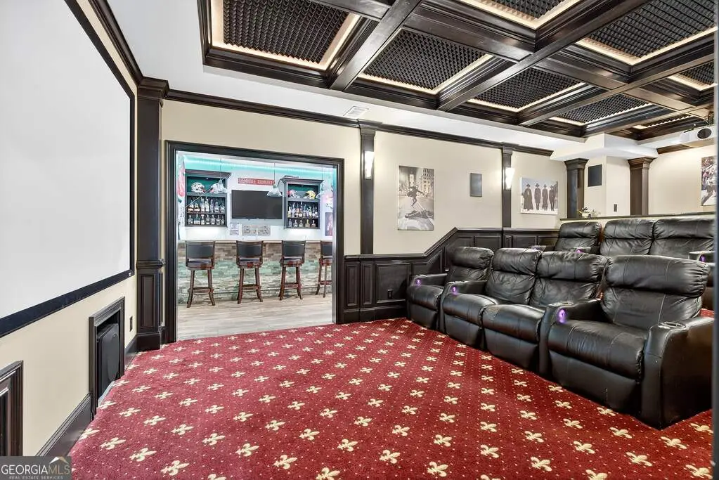Welcome to 53 Vinings Trace in the highly sought-after Arbor Springs neighborhood. Perfectly located just 20 minutes from Atlanta, 15 minutes from Hartsfield-Jackson International Airport, and only minutes from I-85, this stunning six-bedroom, four full and two half bath home offers the perfect blend of luxury and convenience. The main level opens with a welcoming foyer and leads into a large dining room, ideal for entertaining. The chef's kitchen features quartz countertops, refinished cabinets, a breakfast bar, casual dining area, and a cozy keeping room with a fireplace and built-in bookshelves. The spacious living room boasts a soaring two-story feature wall with a fireplace and custom built-ins, creating a true focal point. The owner's suite on the main level is a private retreat with a recently renovated spa-inspired bathroom featuring a stone resin freestanding tub, oversized tiled shower, and marble counters on the dual vanity and marble flooring. Hardwood floors throughout, an office, large laundry room, and a half bath complete the main level. Upstairs, you'll find one bedroom with a private ensuite with a custom tile shower and three additional bedrooms and a full bath, providing plenty of space for family and guests, all with new carpet. The fully finished terrace level is designed for both entertainment and function. It includes a large recreation room and home gym with rubber flooring. The movie theater boasts eight recliners, bar seating, the latest 4K projector, 120" acoustically transparent screen and 7.2 surround sound system with top of the line Klipsch speakers. Next to it is a true man cave with its own bar with under-the-counter ice maker, two under-the-counter fridges and freezer, poker room, and half bath. There is also an additional bedroom and bathroom, plus storage and a workshop area. Outdoor living is just as impressive with a spacious updated Trex deck and sunk-in hot tub, a firepit, all on a large private lot.