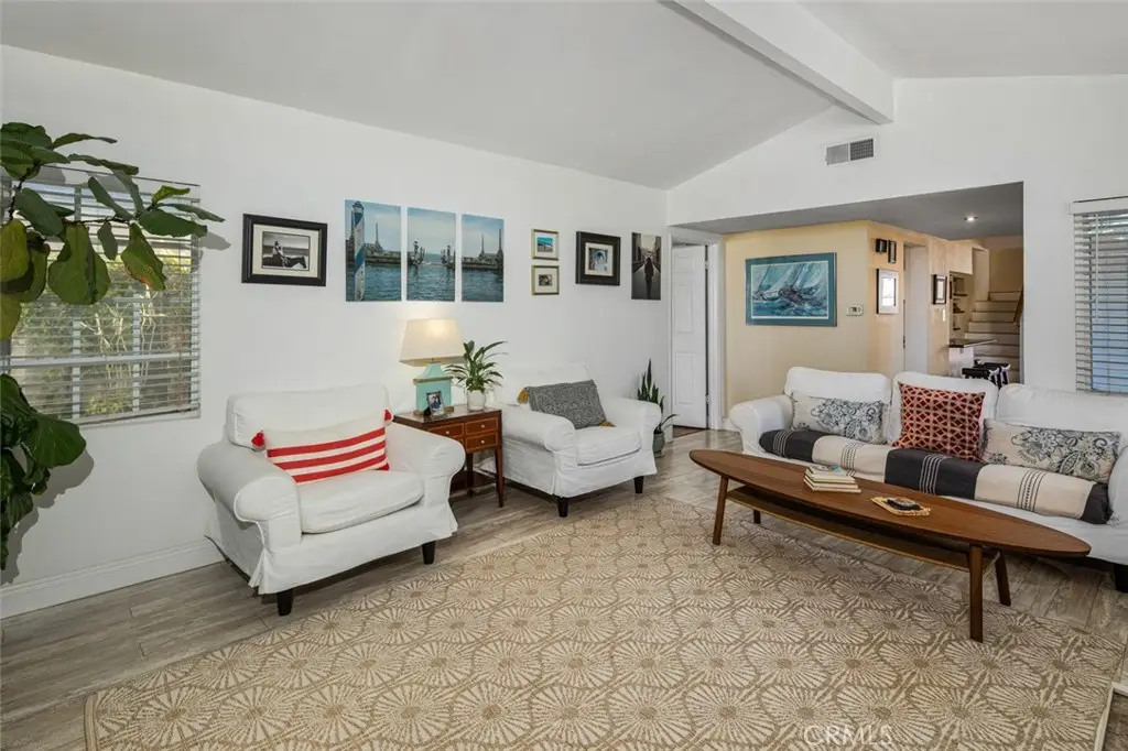 Welcome to 259 62nd Street, on the market for the first time in 40 years. Located just across PCH from one of Newport's best beaches, this home is nestled in the highly sought-after Newport Shores community. It features 4 bedrooms, 4 bathrooms, 2,184 square feet of spacious living space, and sits on one of the larger lots in the neighborhood. Rare canal views from multiple vantage points provide a peaceful backdrop, creating a sense of calm and connection to nature. The living room features the classic A-frame design with beamed ceilings, high windows, and a cozy fireplace, preserving the home's warm coastal character and inviting atmosphere. The kitchen is outfitted with granite countertops, a gas range, and a breakfast bar, perfect for everyday living and entertaining. Upstairs, the expansive primary bedroom suite boasts a large front deck with both an enclosed area currently used as an office and an open-air sun deck. The attached ensuite primary bath includes dual sinks, a jacuzzi tub, and a walk-in closet. A spacious bonus room with a loft creates flexible space for work or play that easily fits your lifestyle needs. This unique layout features two primary bedrooms, one on each level. The main floor suite offers added convenience for those seeking the ease of ground-level living. The 4th bedroom includes an ensuite bathroom, a walk-in closet, and a private exterior entrance, offering the option for separation from the rest of the home, making it an excellent retreat for an older teen or long-staying guest. The backyard is a charming coastal retreat, complete with a brick patio ideal for outdoor dining or relaxing. Additional features include seller-owned solar panels for energy efficiency and a two-car garage with convenient alley access. Nestled along a tranquil canal, Newport Shores offers a unique homeownership experience focused on outdoor living and a tight-knit, family-friendly community. Residents enjoy access to a waterfront clubhouse with a lap pool, tennis and basketball courts, beach volleyball, and a BBQ and picnic area. Directly across the street, the beach invites you to surf, swim, sunbathe, or simply enjoy the ocean breeze. The neighborhood is within walking distance to beloved local spots including restaurants, coffee shops, and the iconic Frog House Surf Shop, and just minutes from the harbor, Bayfront dining, Lido Marina Village, Cannery Village, Hoag Hospital, and the award-winning Newport-Mesa Unified School District.