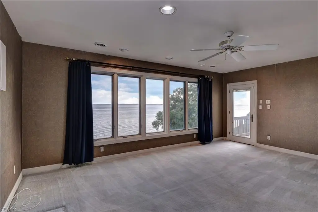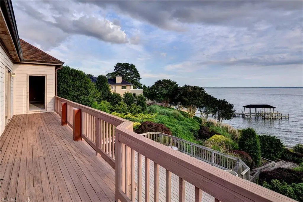 This custom-built James River waterfront home features the best sunsets possible in a convenient location in midtown. The full basement is a walk-out with wood burning fireplace, mechanical, recreational, storage and wine cellar rooms. Primary suite offers his & her bathrooms, large walk-in closet with a balcony over looking the river. A crow's nest entry from the second floor spiral steps is perfect for telescopic views of the abundance of fowl & dolphin activity. FIRST FLOOR OFFICE & BAR. "SOLD AS IS"