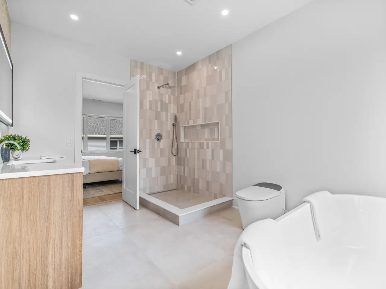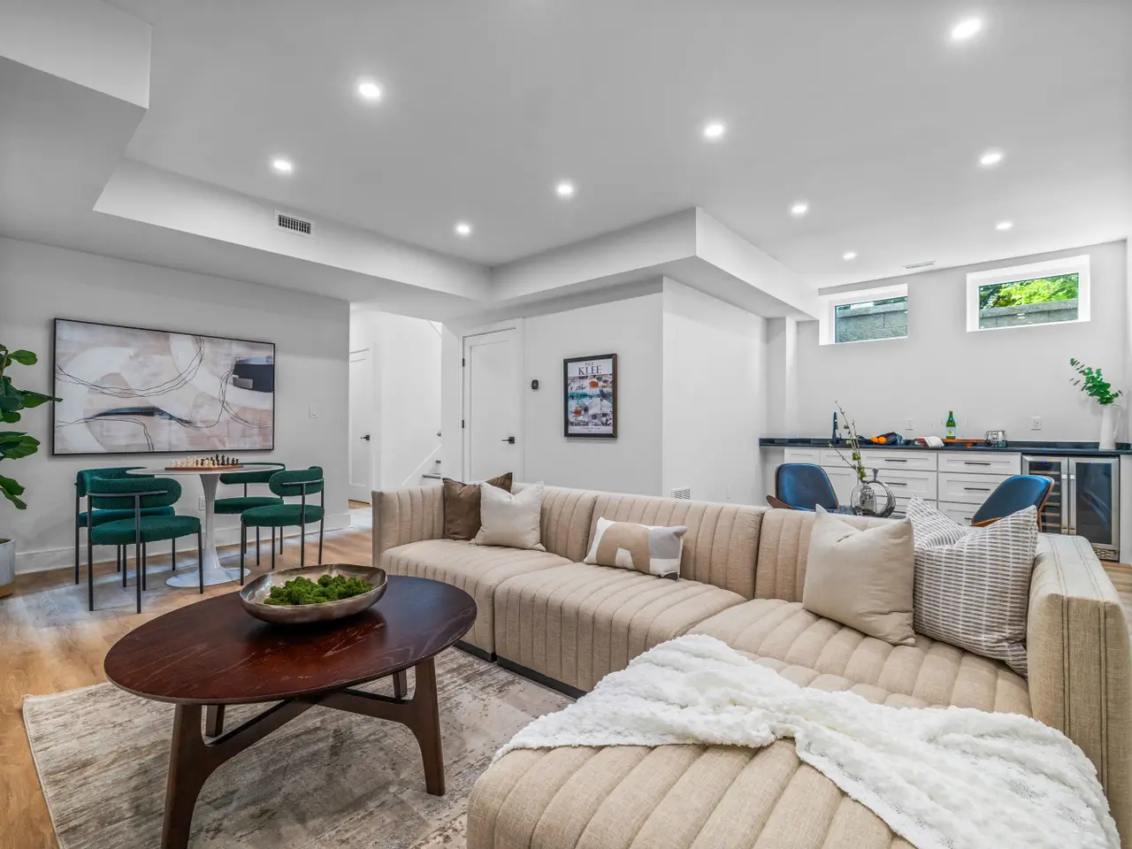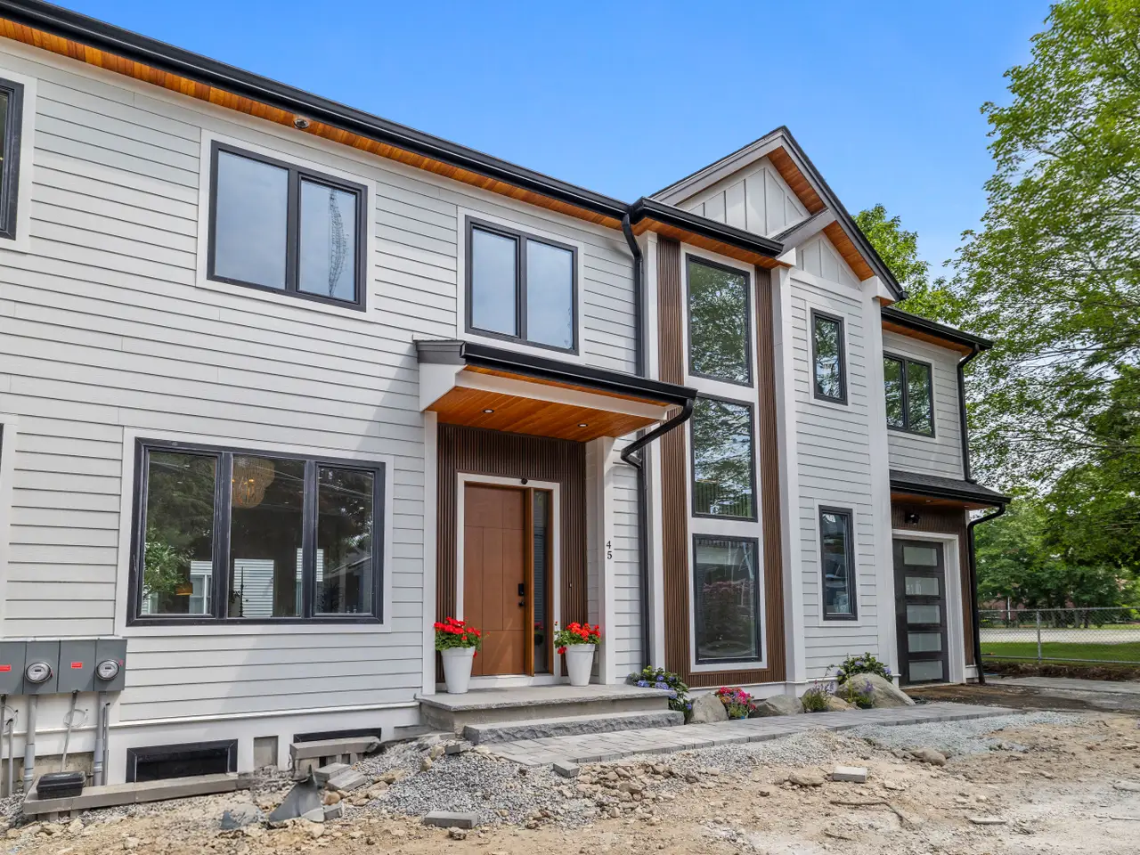 This sun-filled, open-concept home sits on a desirable dead-end street and features soaring ceilings, large European windows, and a chef’s kitchen with stainless appliances, quartz island, and backsplash. The fireplaced living/dining area shines with white oak floors. Upstairs are 4 spacious bedrooms, 3 tiled baths, and laundry, including a luxurious front-to-back primary suite with custom dressing room and spa-like bath. The bright lower level offers a 5th bedroom, full bath, and large rec room with wet bar and wine fridge. Launch your favorite watercraft or fish steps from your front door. EV charging in direct entry oversized garage. Excellent commuter location. Close to restaurants, shops, T.