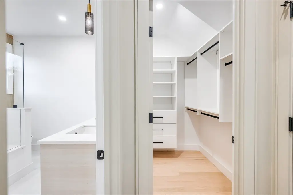 Elegant new construction 4 bed, 3.5 bath townhome with 2-car garage parking and private yard. Thoughtfully designed with high-end finishes throughout, this home blends modern style with everyday function. The open-concept main level features a chef's kitchen with integrated appliances, custom cabinetry and built-ins, a sleek linear fireplace with striking arch details, along with a stylish wallpapered half bath and a custom built-in mudroom. Upstairs, find 4 spacious en-suite bedrooms, including a luxurious primary suite with walk-in closet and spa-inspired bath, plus laundry. The finished lower level offers versatile space ideal for a gym, media room, or playroom. Built to live like a single-family home, this property provides comfort and convenience in a prime location near parks, the Charles River trail, neighborhood shops and restaurants, and with easy access to Watertown and Cambridge.