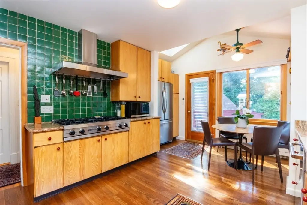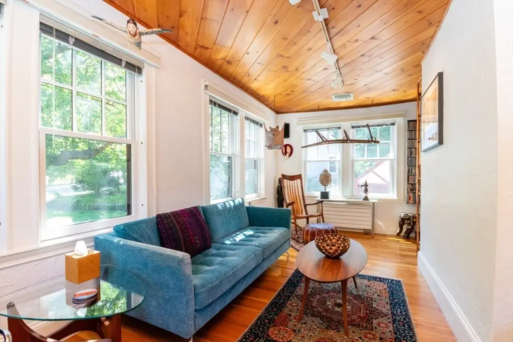 Storybook home on lush grounds in prime Newton Centre location. This special property has been thoughtfully renovated and lovingly maintained. Architectural features abound - gumwood trim, gleaming hardwood floors, crown molding and a fireplaced living room with beamed ceiling and French doors. Custom designed eat-in-kitchen with granite counters, breakfast area, skylight, and 6 burner Viking stove. Formal dining, sunroom and full bathroom tiled with marble walk-in shower room completes the first floor. Second floor has four bedrooms and a renovated bathroom. Basement offers workspace and plentiful storage. Large deck, serene yard for entertaining and relaxing and an oversized 2 car detached garage. Moments to Mason Rice Elementary School, Library, shops, Whole Foods, restaurants, Cold Springs Park and swimming and water sports at Crystal Lake. Open Houses Saturday 8/2 and Sunday 8/3 from 1:00PM - 2:30PM both days...Offer Deadline of Tuesday, 8/5 @ Noon.