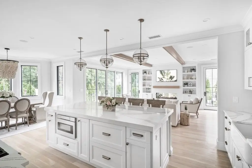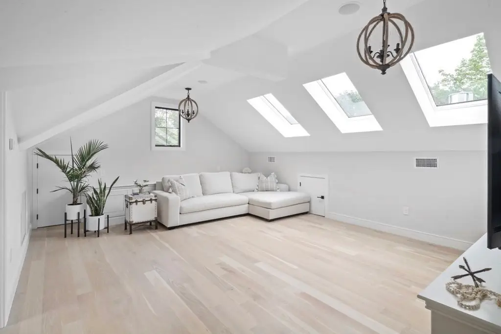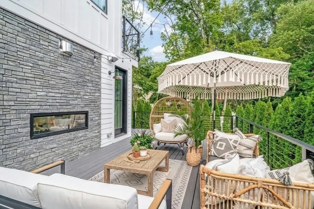 Exceptional custom-built residence blending timeless design with modern comfort. Bright and airy, this home boasts soaring ceilings and large windows throughout. The main level has a chef's kitchen with an oversized island, walk-in pantry, an office, and premium appliances, seamlessly connecting to a dining area with a stylish wet bar. The living room centers around an indoor-outdoor fireplace and flows to a spacious deck and bluestone patio. Upstairs, the primary suite impresses with dramatic cathedral ceilings, its own fireplace, and a private balcony. The spa-inspired bath features a steam shower, soaking tub, heated floors, and skylights. The third floor offers a generous family room & half bath, perfect for work or play. Outdoors includes a front porch with an idylic swing, wrap-around deck with Marquis Spa 6-person hot tub, and beautifully landscaped grounds. This thoughtfully designed home offers luxury living in one of Newton's premiere neighborhoods and local conveniences.