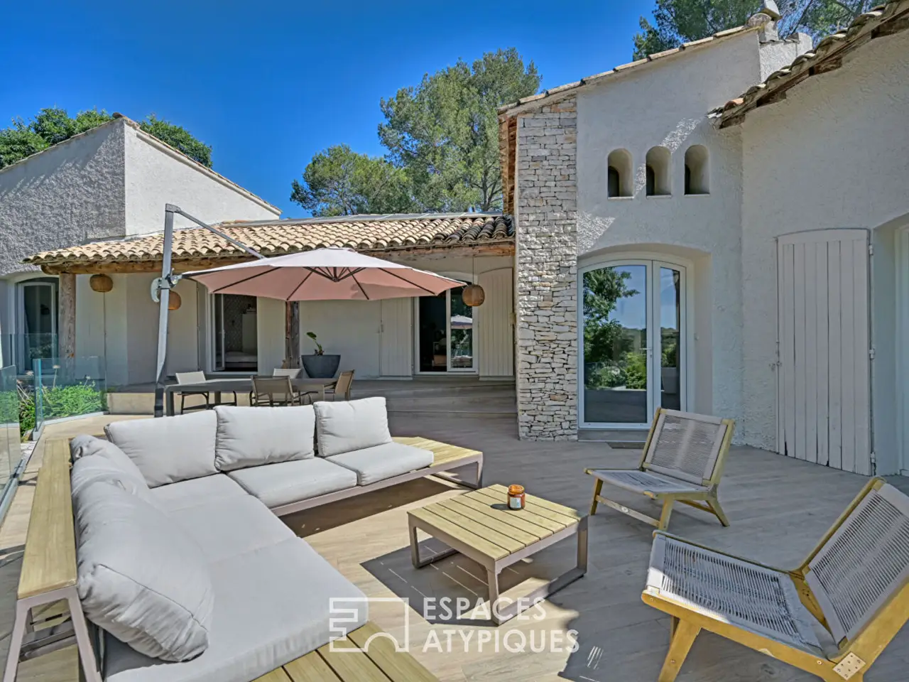 Just minutes from downtown Nimes, nestled on a hillside, a rare living environment. On a meticulously landscaped 3000 sqm plot, this fully renovated old house offers 220 sqm of elegance and comfort, in a serene and luminous atmosphere. Upon entering, the eye is drawn to the generous volumes and the fluid flow between the spaces. Stone, glass, and natural materials intertwine skillfully, creating an ambiance that is both warm and contemporary. The spacious living room, bathed in light thanks to large bay windows, opens onto a private terrace with panoramic views of the surrounding nature. The central fireplace and the attention paid to every decorative detail reinforce this feeling of well-being. The open, fully equipped kitchen extends this convivial living space, designed for entertaining. On the ground floor, two elegant bedrooms and a shower room welcome guests, while a master suite with a private bathroom offers an intimate and refined cocoon. Upstairs, a hotel-worthy suite, with a custom-made dressing room and a bathroom equipped with a whirlpool tub for two, invites absolute relaxation. Outside, the Mediterranean garden evokes a Provencal postcard, with its stone walls. Every corner has been designed to offer moments of calm or conviviality. A beautiful swimming pool completes this ensemble, accompanied by its pool house and a fully equipped summer kitchen. This villa perfectly combines character and modern comfort. It also features photovoltaic panels for better energy management, as well as four private parking spaces. This unique place is an invitation to slow down, to contemplate, to live fully. A rare house, designed as a refuge of beauty and light, just steps from all amenities. ENERGY CLASS B (107) / CLIMATE CLASS A (3) Estimated average amount of annual energy expenditure for standard use: between 1694 and 2292 euros/year Additional information * 6 rooms * 4 bedrooms * 2 bathrooms * 1 bathroom * Outdoor space : 2800 SQM * Parking : 4 parking spaces * Property tax : 3 850 € Energy Performance Certificate Primary energy consumption b : 107 kWh/m2.year High performance housing