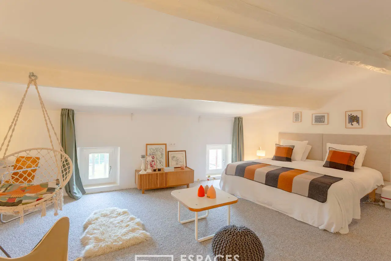 À l'abri des regards, au cœur d'un écrin de pierre typiquement uzénitain, cette propriété de 258 m² se révèle un trésor caché, à deux pas de la place aux Herbes, très animée. Deux maisons, comme deux bouffées d'air pur. L'une familiale, généreuse et baignée de lumière. L'autre, plus intime, parfaite pour les amis, les grands enfants ou les séjours d'hôtes de passage. Entre les deux, un jardin comme un refuge, et une longue et douce piscine à la romaine, chauffée pour mieux prolonger les journées ensoleillées. La pierre ancienne raconte l'histoire du lieu, tandis que les grandes ouvertures écrivent celle d'un quotidien lumineux, ouvert sur l'extérieur. Partout, la lumière pénètre, douce et naturelle, glissant sur les murs et soulignant la noblesse des matériaux. La maison principale s'ouvre sur un généreux espace de vie de 60 m², où les volumes dialoguent harmonieusement : cuisine ouverte, salle à manger, salon autour d'une cheminée à gaz, pensé pour les soirées d'hiver où l'on rêve encore d'été. Deux chambres, une salle de bains et des toilettes complètent ce niveau. À l'étage, trois chambres supplémentaires, dont deux avec salles de bains privatives, un grand dressing et deux toilettes invitent à la détente. L'ensemble est climatisé, fluide, fonctionnel et pourtant unique. La maison d'amis, quant à elle, offre deux chambres, une salle de bains, un séjour avec cuisine, et s'ouvre sur une terrasse ombragée, idéale pour une lecture lente ou des conversations interminables. Deux entrées indépendantes complètent cette configuration, ouvrant la voie à un usage locatif saisonnier ou simplement à une vie à géométrie variable, entre intimité familiale et accueil choisi. Un double garage de 60 m² avec portail automatique complète l'ensemble. Un lieu rare, entre patrimoine et poésie, où chaque pierre semble avoir été posée pour accueillir une histoire à venir. Contact : Virginie 06 77 39 33 14 CLASSE ÉNERGÉTIQUE : C / CLASSE CLIMATIQUE : B Montant moyen estimé des dépenses énergétiques annuelles pour un usage standard, établi à partir des prix de l'énergie pour l'année 2021 2022 2023 : entre 1740 et 2420 euros RÉF. 11114Informations complémentaires* 10 pièces* 7 chambres* 1 salle de bain* 3 salles d'eau* Surface extérieure : 450 m²* Taxe foncière : 2 500 €Diagnostic de performance énergétique (DPE) vierge ou en coursEstimation des coûts énergétiques annuels moyens pour un usage standard, indexés sur les années 2021, 2022, 2023 : entre 1740 € et 2420 €Abonnement inclusHonoraires d'agenceLes honoraires s'entendent TVA comprise et sont à la charge du vendeurMédiateurMédiation Franchise-Consommateurswww.mediation-franchise.com29 Boulevard de Courcelles 75008 ParisInformations sur les risques auxquels ce bien est exposé sont disponibles sur le site Géorisques : www.georisques.gouv.fr