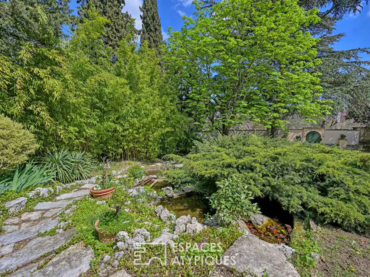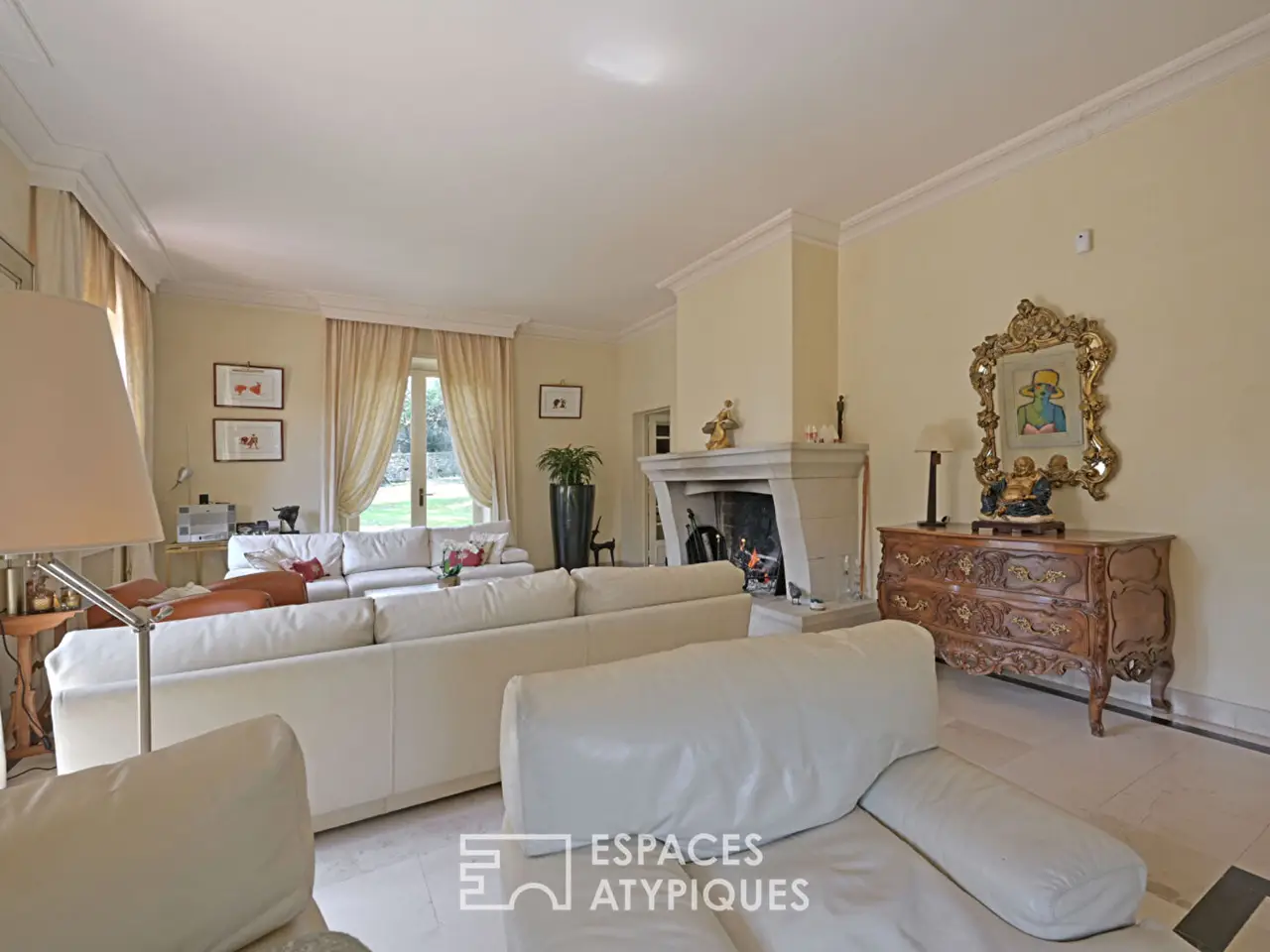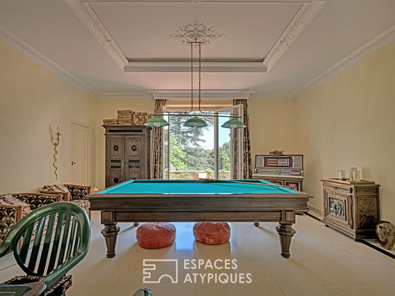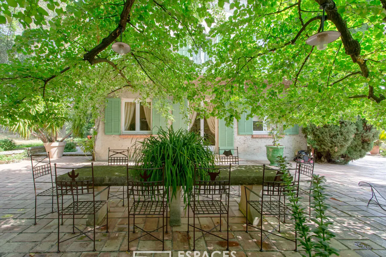 In one of the most sought-after neighborhoods in Nimes, close to the city center, this authentic 1950s house will captivate you with its timeless charm and exceptional potential. Set on a magnificent wooded and landscaped plot of over 2,300 m², this property boasts a particularly charming garden. It offers 273 m² of living space, plus outbuildings and a garage. The ground floor features a light-filled living room with a fireplace, a dining room, a fitted kitchen, and a games room. Each room opens onto spacious terraces, designed as true outdoor spaces, perfect for al fresco dining and relaxing moments. Upstairs, the sleeping area includes an office and four bedrooms, one with a private shower room, as well as an additional bathroom. The perfectly finished basement offers over 100 m² of additional space, including a laundry room, cellar, boiler room, and a garage with an automatic door. Combining the charm of the past, the comfort of its spaciousness, and the quality of its surroundings, this property is a real opportunity for lovers of beautiful homes, to live as is or reinvent according to your desires. ENERGY CLASS: D / CLIMATE CLASS: D Estimated average annual energy costs for standard use, based on 2022 energy prices: between €3,022 and €4,088. Contact: Eleonore Brunel +33 6 66 23 78 64 REF. 10500 Additional Information * 7 rooms * 4 bedrooms * 1 bathroom * 1 powder room * Land area: 2,350 m² * Parking: 4 spaces * Property tax: €3,600 Energy performance audit Primary energy consumption d: 203 kWh/m²/year Extremely efficient housing