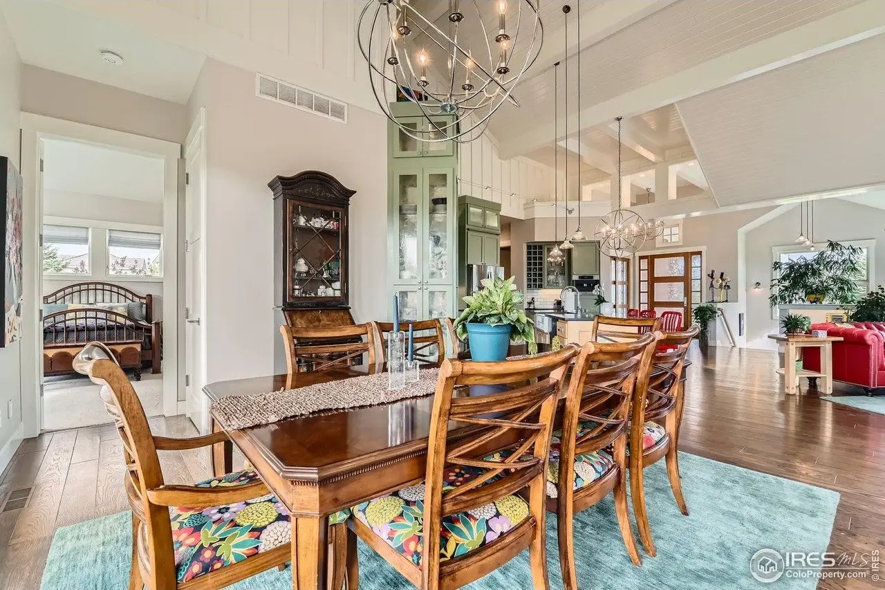 Welcome to 8392 Niwot Meadow Farm Rd, an architect-designed masterpiece in the serene and sought-after Niwot Meadow Farms community. Built by the owner, an accomplished architect, this one-of-a-kind estate blends timeless design with luxurious modern living. Set on 2.77 private, protected acres that cannot be built on, the home enjoys a tranquil, pastoral setting with expansive front views, offering peace, privacy, and a stunning connection to nature. The exterior features natural Colorado red sandstone, solid wood board-and-batten siding, and a concrete tile roof. Inside, vaulted ceilings with tongue-and-groove details, engineered wood floors, custom millwork and telescoping doors create light-filled spaces and seamless indoor-outdoor living. The gourmet kitchen includes Dacor appliances, a Miele built-in coffee maker, custom cabinetry with a rolling ladder, and a walk-in pantry. The great room showcases a horizontal fireplace with a red sandstone surround, flowing into the dining and outdoor areas. The main level offers a luxurious primary suite with a two-sided fireplace and stone accents; a guest suite with a private bath; a spacious office; a custom mudroom; an oversized two-car garage with a shop space and a built-in dog wash shower; and a separate one-car garage. A private studio suite with bath, wet bar and washer/dryer provides flexible living options. The lower level features a family room with a wet bar, three bedrooms, two bathrooms, a laundry room and ample storage. Outdoor living shines with a large covered patio, trellis, outdoor fireplace, and new landscaping. Sustainability meets luxury with geothermal heating and cooling, radiant floor heating, a solar PV system and new exterior paint. Located within walking and cycling distance to downtown Niwot, award-winning schools, and minutes to Boulder and Longmont, this extraordinary estate is a true legacy property.