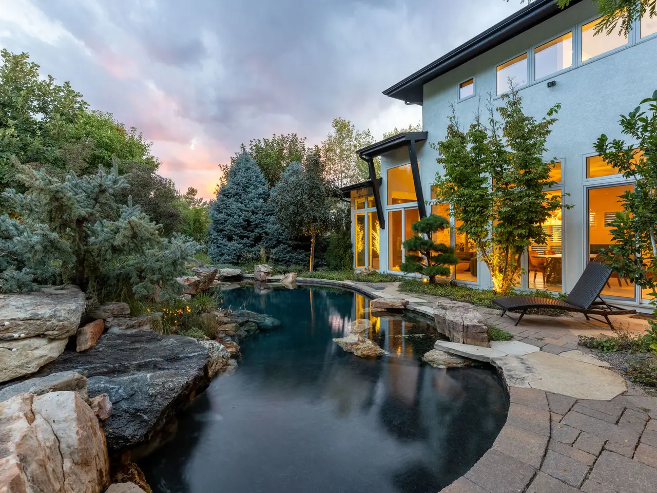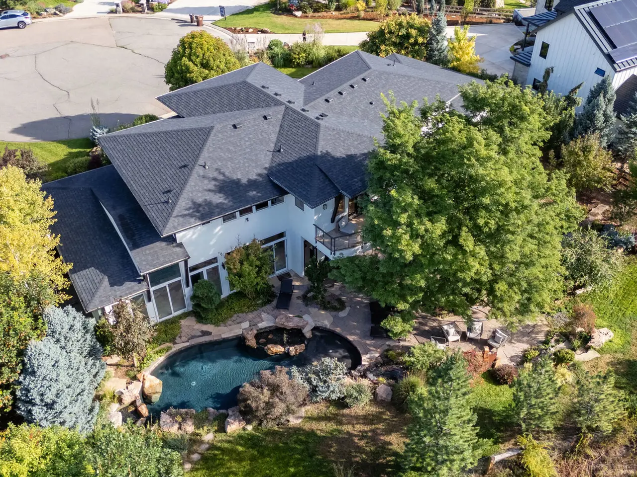 Seeking modern & contemporary, light filled and ONE with nature - you must see this gorgeous home with a private, sanctuary like backyard on almost 1/2 acre. Backing to open space, you'll appreciate the plunge pool, hot tub or sitting in front of the fire pit enjoying the tranquility in your own space. Extensive landscaping allows for seasonal blooms throughout the spring, summer and fall. Inside, you'll be wow'd by the gorgeous finishes, tall ceilings and large rooms yet it's got a warm and inviting feel throughout. Cozy up with a magazine or entertain for all your friends - this home can handle it all. It's an entertainer's DREAM. Mountain views, private spaces and light abound. A walkout lower level features a kitchenette, a gorgeous bedroom with daylight windows and a luxury, spa-like full bathroom. The lower level itself is a haven not to be missed with a giant rec room and other tranquil spaces. Upstairs is a primary suite with luxury bath including a Japanese soaking tub. Another ensuite bed / bath combo is perfect for the teen or guest and 2 other bedrooms share a jack and jill bathroom. If you're looking for tranquil, multiple work and flex spaces, a large, oversized garage on a huge, private lot, you must see this home. A new roof in '24, everything has been impeccably maintained. Stop in to see for yourself.
