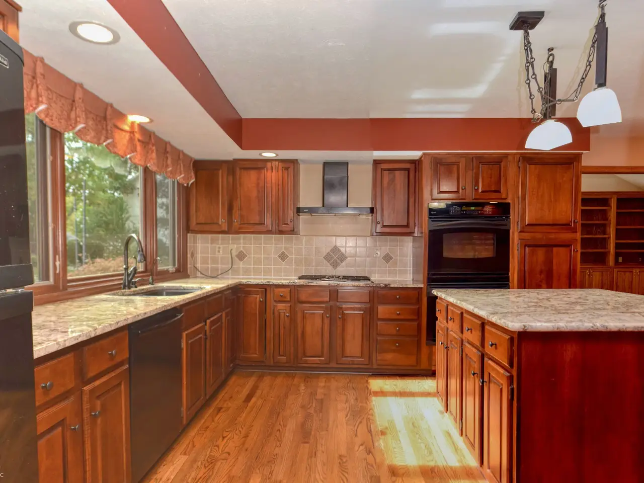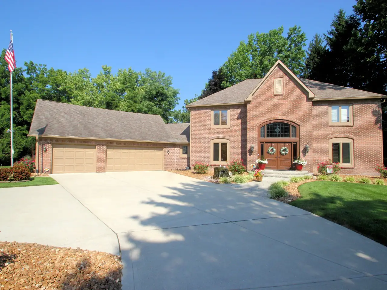 Gorgeous 4BR/2.5BA on golf course! 2 story entry with den/office. Inviting large center isle kitchen, totally remodeled with double oven, granite countertops, & dining room. Hardwood throughout, top of the line everything. Awesome family room with cathedral ceiling - floor to ceiling gas log brick fireplace with French doors into the Sunroom. Bookcases throughout. Elegant formal dining room and library with gas log fireplace. Remodeled Master suite with cathedral ceiling. Adjacent BR to mstr has been converted to ladies dressing room, and can be converted back. Beautiful wooded/private lot, huge remodeled bonus room over garage. Huge 3-car garage. Close to lake. Lovingly maintained!
