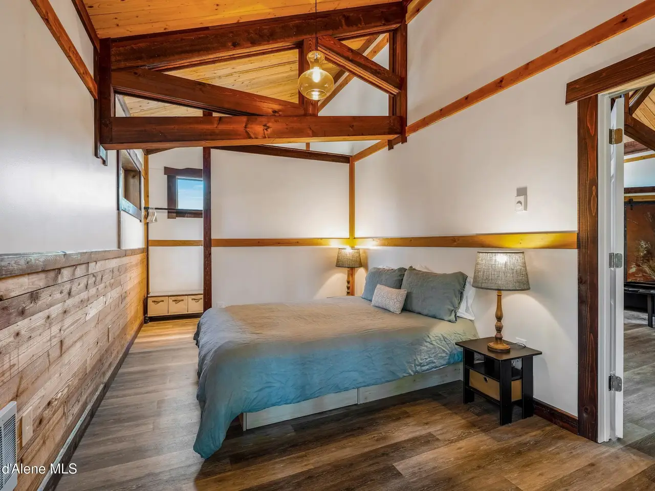 Welcome to your own five-acre paradise — an ideal blend of county living and income-generating potential. This unique property features two rental units: a three bedroom, two bath home with warm, locally sourced wood finishes, elevated rustic charm, and a sauna located in the main bedroom. Additionally a two bedroom, 2.5 bath loft-style apartment above a versatile shop. The custom-built shop/barn is designed for dual purpose—host weddings and private events in the warmer months, then convert to boat storage for off-season revenue. The grounds are beautifully landscaped with lush grass, established plants, and a full sprinkler system for easy maintenance. Whether you're looking to expand a rental portfolio, run a seasonal business, or enjoy multi-generational living with added income, this property offers exceptional flexibility, beauty, and long-term value—all just minutes from the lake and year-round recreation.