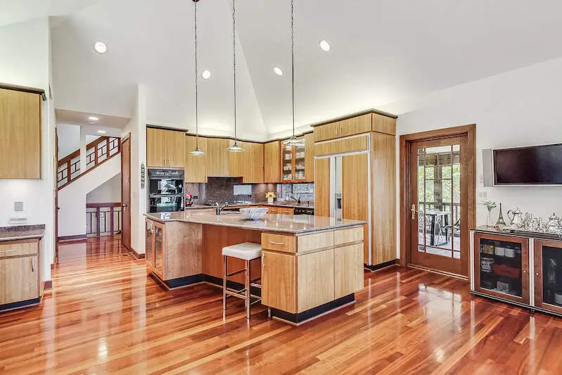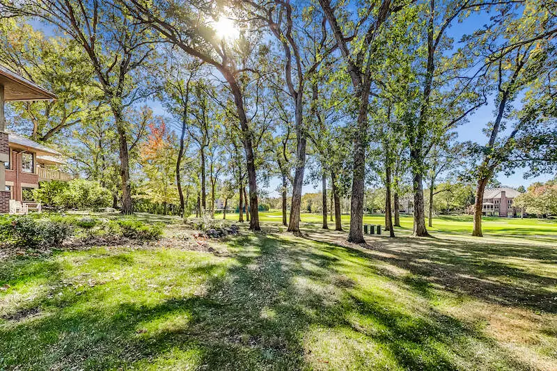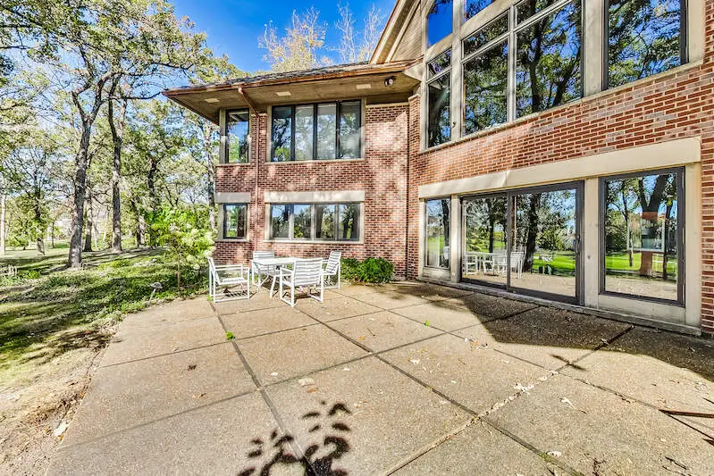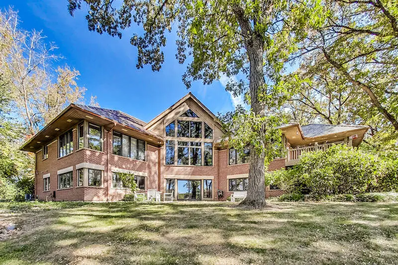 Designed by the talented and highly acclaimed architect, Ron McCormick. Iconic home situated on approximately 1.3 acres and overlooking the sweeping views of 16th fairway of Wynstone Golf Course. For those discriminating buyers desiring the finest of a unique custom built home with features including stone and woods incorporating the gorgeous oaks of outside and the contemporary oasis of the inside. One is welcomed by a dramatic entrance to almost 4000 square feet on the first floor! The layout and style of the home captures every aspect of the property. Ideal home for those seeking multi generational situation or more elegant and private guest space. Expansive primary suite on main level, blend of mid century and Frank Lloyd Wright tones in the kitchen, dining area, and great room with expensive flooring and wood touches. Upstairs provides the perfect guest quarters with living space, bedroom, and separate kitchenette area. The finished walkout emphasizes the openness of the home and highlights the floating staircase. Incredible spaciousness to entertain, enjoy the fine elements of the home, and the impressive property with towering trees. Recent HVAC replaced and one year new roof.