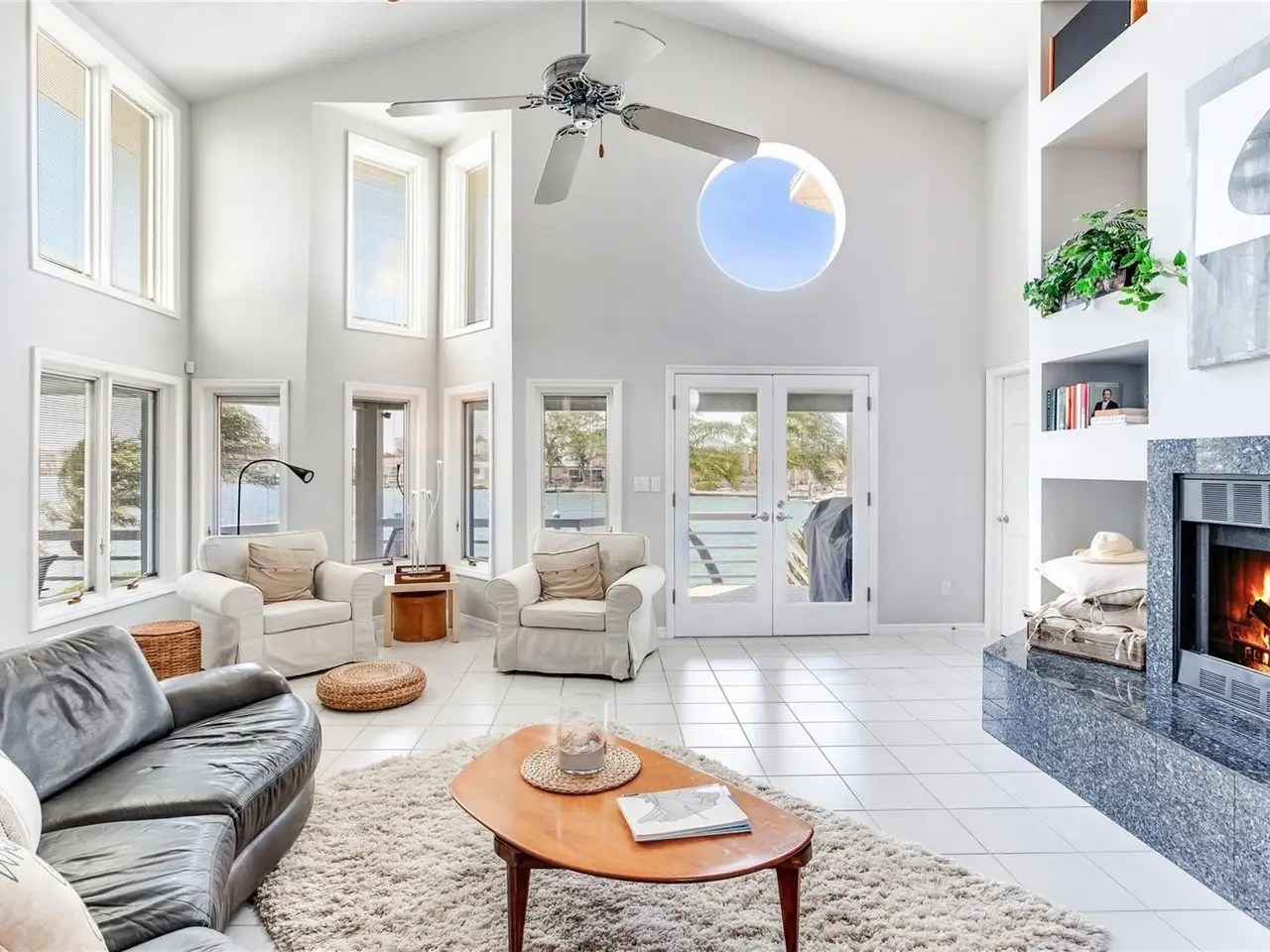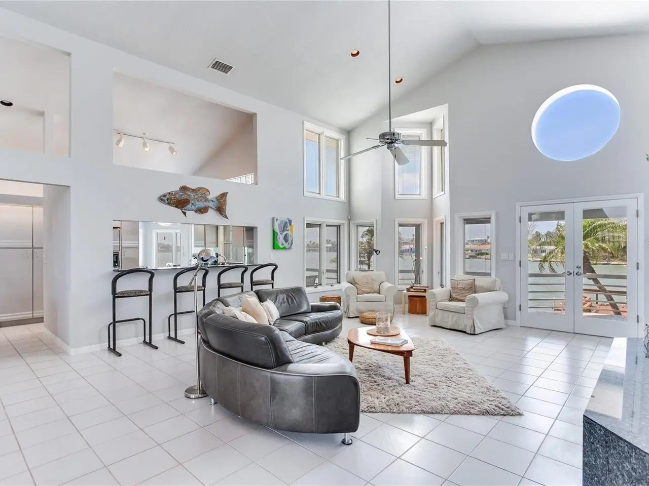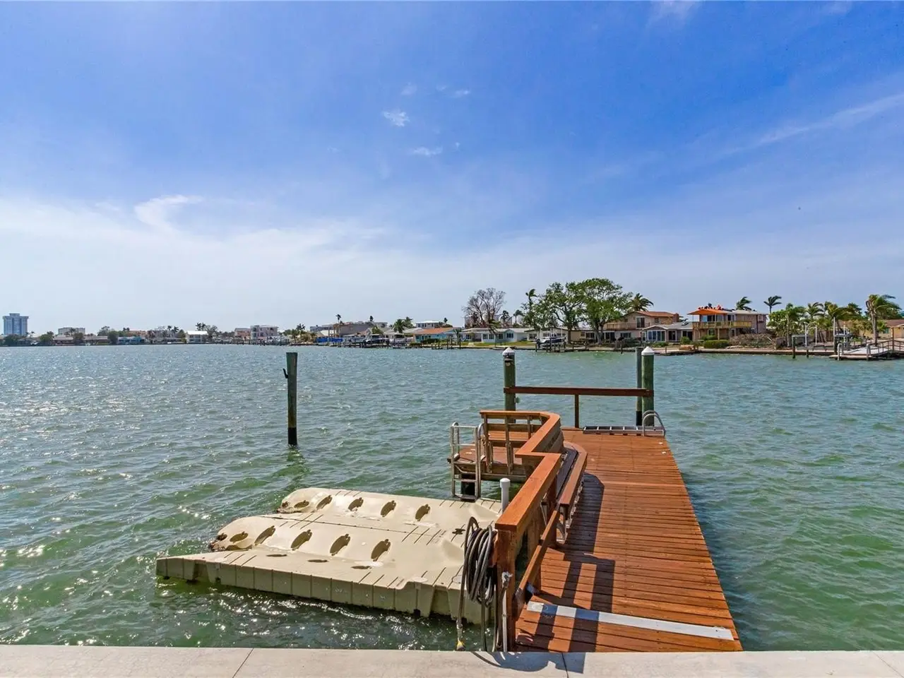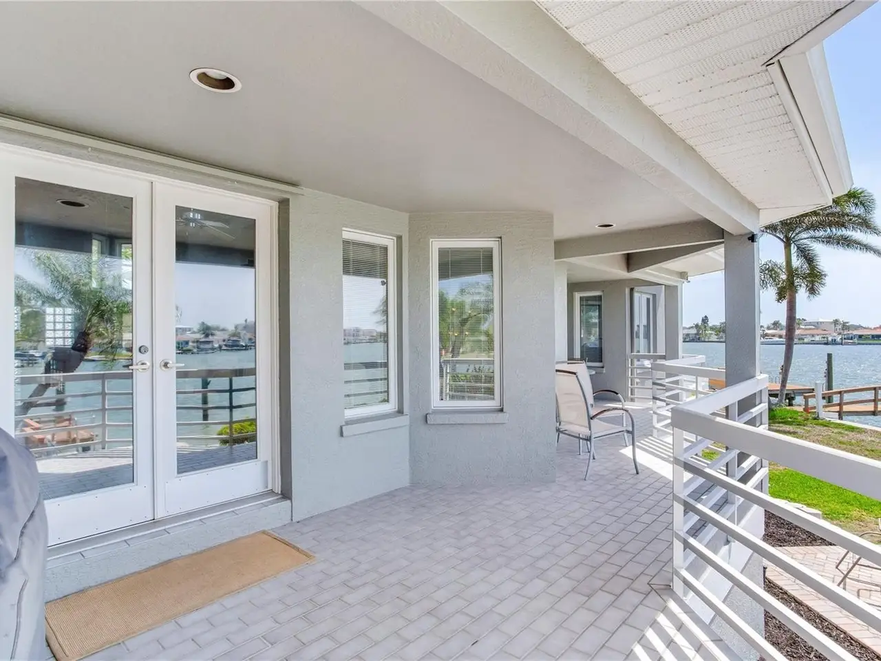 STUNNING ELEVATED CUSTOM-BUILT CONTEMPORARY HOME ON 107 FT OF WATERFRONT IN NORTH REDINGTON BEACH!! Welcome to your slice of waterfront paradise! Perfectly situated at the end of a quiet cul-de-sac, this architecturally unique residence boasts 107 feet of prime open water frontage with spectacular west-facing views—a front-row seat to unforgettable Florida sunsets. Step inside this 3-bedroom(3rd Bedroom has been opened up as a versatile loft space-perfect for a home office, den, or media area-but can easily be enclosed again with a door and half wall to restore full functionality), 3-bathroom home with 2,541 sqft of thoughtfully designed living space, where soaring vaulted ceilings and abundant natural light highlight the home’s open and airy feel. Nearly every room captures panoramic water views, bringing the beauty of the bay right into your living space. The spacious primary suite offers a true retreat, complete with a large walk-in closet and a spa-inspired en suite bath featuring a freestanding designer soaking tub, frameless glass shower, and dual vanities. The kitchen is perfectly positioned to overlook the living area and includes a cozy breakfast nook—ideal for morning coffee with tranquil water views. Luxury finishes throughout include granite countertops, a stunning pearl granite hearth, Pella windows, and storm panels. Step outside to the expansive balcony and enjoy your private dock, heated spa with fountains, and plenty of room for entertaining or unwinding in your peaceful bayfront oasis. The 107-foot seawall (installed in 2006) adds lasting value and peace of mind. Located just a short walk to the beach, near a city park, and surrounded by underground utilities for a clean, serene streetscape—this home seamlessly blends luxury, location, and lifestyle.