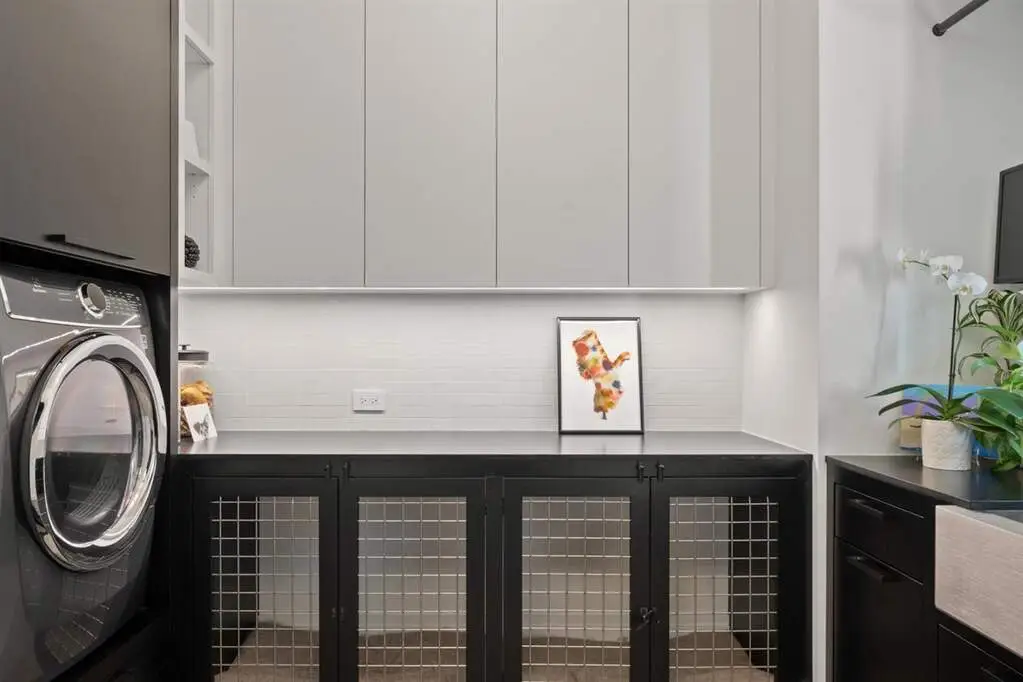 - Chef's kitchen with Iceberg Quartzite island and custom cabinetry