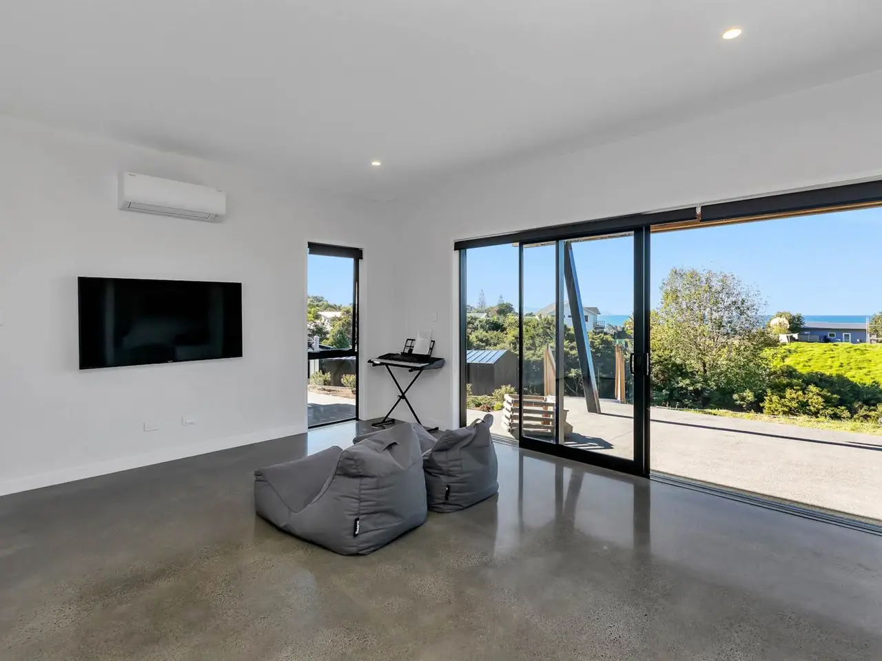 In the heart of Langs Beach, our Vendors envisioned a special home that serves as a sanctuary away from the hustle and bustle of everyday life, allowing them to connect with nature and enjoy breathtaking views of the Pacific Ocean. With their young family in mind, the bespoke design features open and spacious living areas alongside outdoor spaces for relaxation and play. It harmonizes with the unique landscape while maximising ocean vistas. The lower floor includes three bedrooms, a bathroom, a study nook, a bunk/rumpus room, and a double garage, all connected by polished concrete floors and stairs. The upper floor houses the main living areas, highlighted by the designer kitchen, which overlooks the dining and family room. The floor steps down to the cozy lounge area that also enjoys stunning sea views. The master suite offers a private retreat, with a beautiful view of the ocean, complemented by a walk-in wardrobe and ensuite. Two outdoor spaces— a sheltered deck and courtyard—provide comfortable areas for gatherings, whether for family and friend barbecues or quiet evenings. Easy access to the beach via the private walking track at the bottom of the section. Ultimately, this stunning family home perfectly blends comfort, style, and functionality, creating a cherished sanctuary that brings the beauty of the Pacific Ocean and the warmth of family life together. Viewing by appointment.
