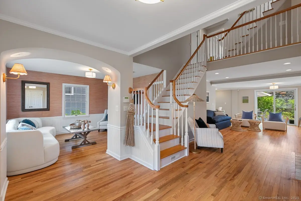 A coastal Connecticut entertainer's dream, this newly updated home is located on a quiet cul-de-sac in the highly desirable Gregory Point neighborhood. With deeded beach access just steps away, you can enjoy stunning sunsets from the sand, your kayak, or stand-up paddleboard. The flexible and open floor plan is designed for both everyday living and seamless entertaining, featuring a two-story fireplace crafted with masterful detail and a custom kitchen designed by award-winning Karen Berkmeyer, as seen in New England Home Magazine. Coastal-curated landscaping and a meticulously maintained exterior enhance the home's charm, while the expansive third-floor bonus space, with water views and a private balcony, offers the perfect spot to relax or host. A first-floor primary suite is also a possibility thanks to the versatile layout. From thoughtful design to exceptional craftsmanship, this Gold Coast gem will wow you at every turn.