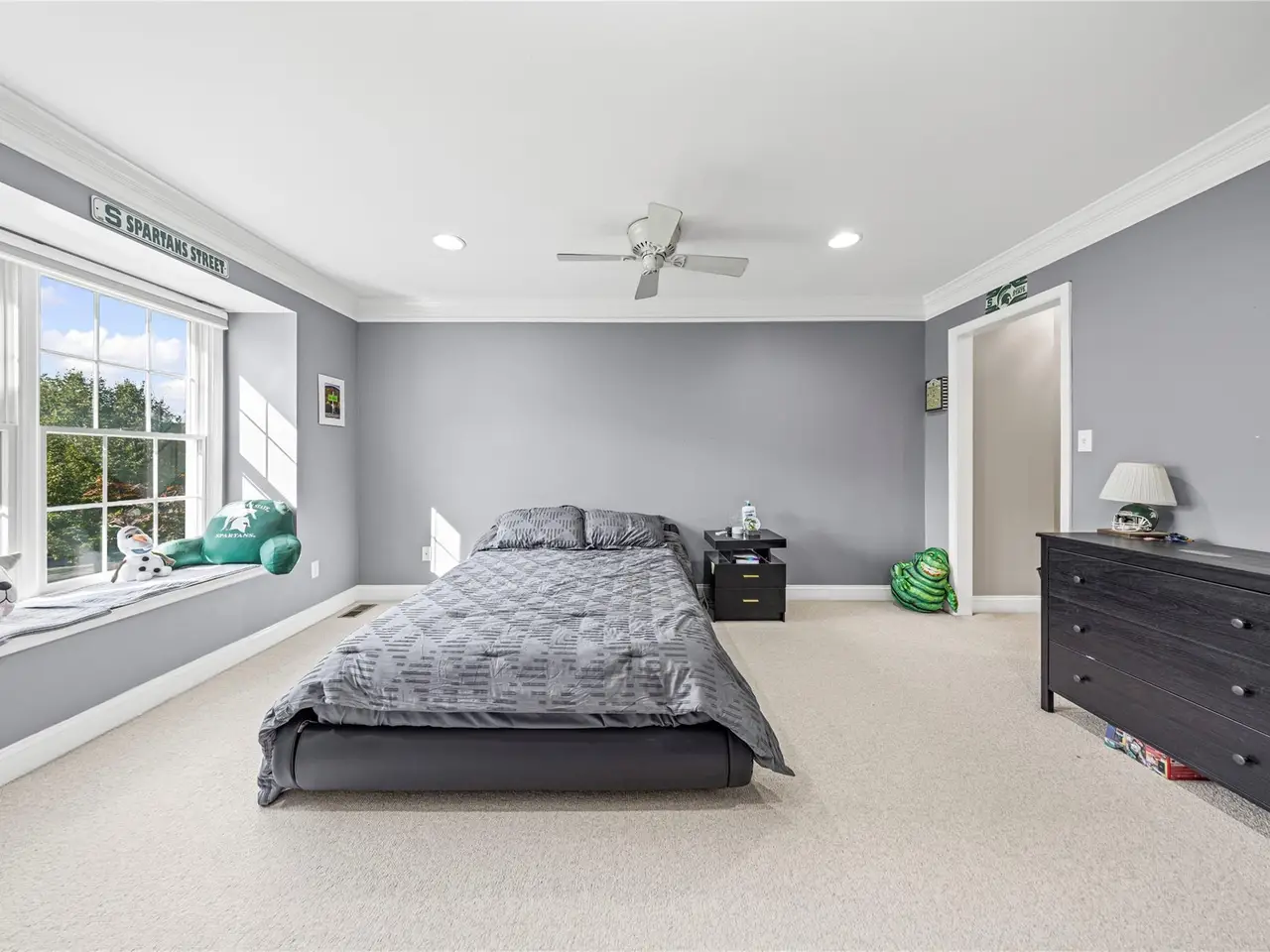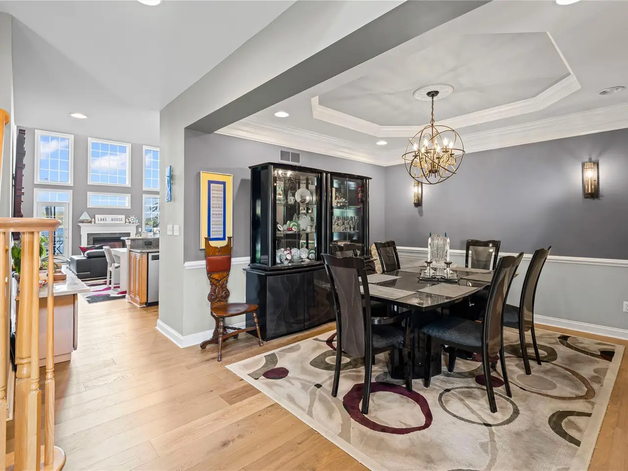 Enjoy Island Lake from every level of this stunning home! Designed for both entertaining and everyday living, this residence offers a bright, open floor plan with breathtaking views throughout. The first-floor primary suite features vaulted ceilings, an updated private bath (2024), and a large walk-in closet. A convenient first-floor laundry adds to the ease of living. The two-story Great Room boasts abundant natural light and French doors leading to a spacious deck overlooking the lake. The beautiful kitchen includes granite countertops, a newer refrigerator (2023), dishwasher (2022), and double oven—perfect for home chefs. Upstairs, a loft area offers picturesque lake views. The large ensuite bedroom includes a coved ceiling and walk-in closet, while another generously sized bedroom with a vaulted ceiling completes the upper level. The finished lower level impresses with high ceilings, a full kitchen, a natural stone gas fireplace, and ample space for a home gym, playroom, or recreation area. French doors open to a brick paver patio and an expansive lawn leading to the water’s edge. Enjoy the tranquil 4.5-mile walking path around Island Lake or simply relax and cast a line for some fishing. This home beautifully combines comfort, style, and the serenity of lakeside living.