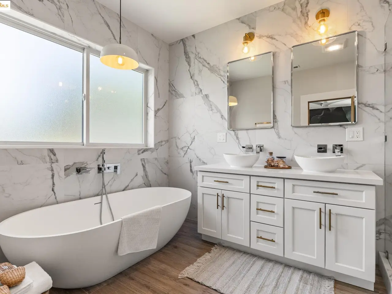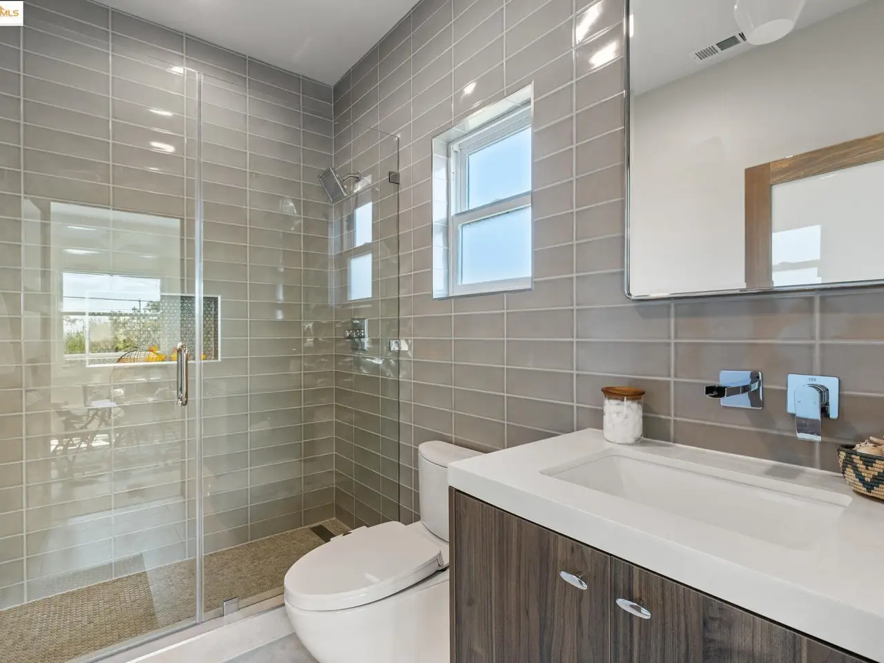 Welcome to this reimagined and remodeled home where stunning curb appeal meets sleek, high-end interiors. Modern landscaping, crisp white trim, bold black windows, and blooming bougainvillea set the stage. Inside, wide-plank wood floors, curated lighting, and designer finishes flow throughout. A sun-filled den and main-level bedroom and bath lead to a dramatic great room with soaring ceilings. The chef's kitchen features a central island for gathering, high end appliances, walk-in pantry, and two bifold doors which completely opens up the home to the landscaped backyard. Upstairs, you will find three bedrooms including a luxurious primary suite with balcony, walk-in closet, and spa bath with a huge designer soaking tub. Conveniently located close-by is a gracious bedroom, fun bath and another oversized en-suite room. A flexible alcove is ideal for a home-gym, office, play space or reading nook. Grand laundry room with so much storage! Detached storage shed and bike shed, EV charger, Nest thermostat and newer systems throughout. Fabulous North Oakland neighborhood with so much to offer: Bushrod and Dover Parks minutes away, trendy Temescal and Rockridge shops/restaurants, Whole Foods and BART! What more could you ask for!